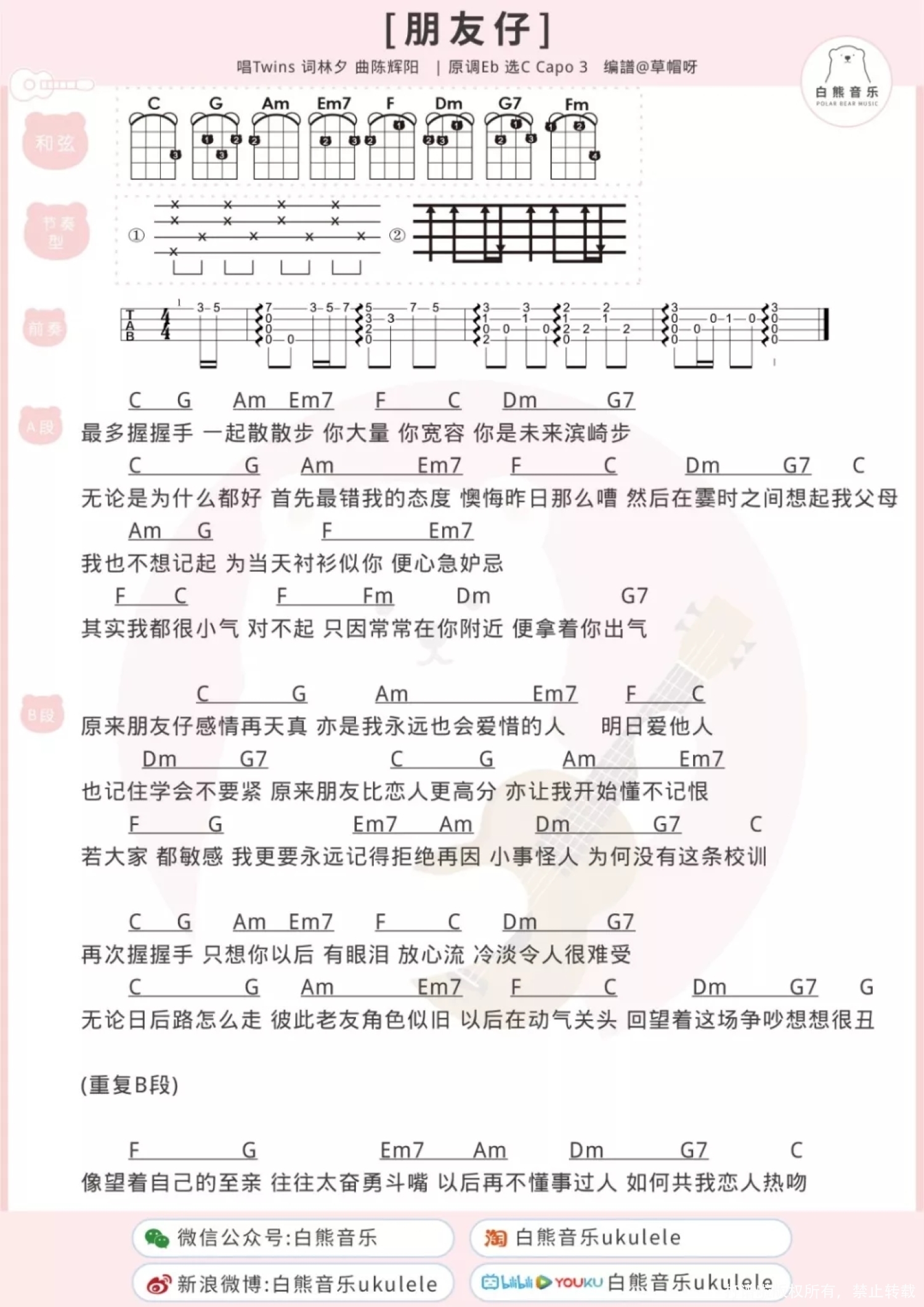 朋友仔尤克里里谱 - Twins