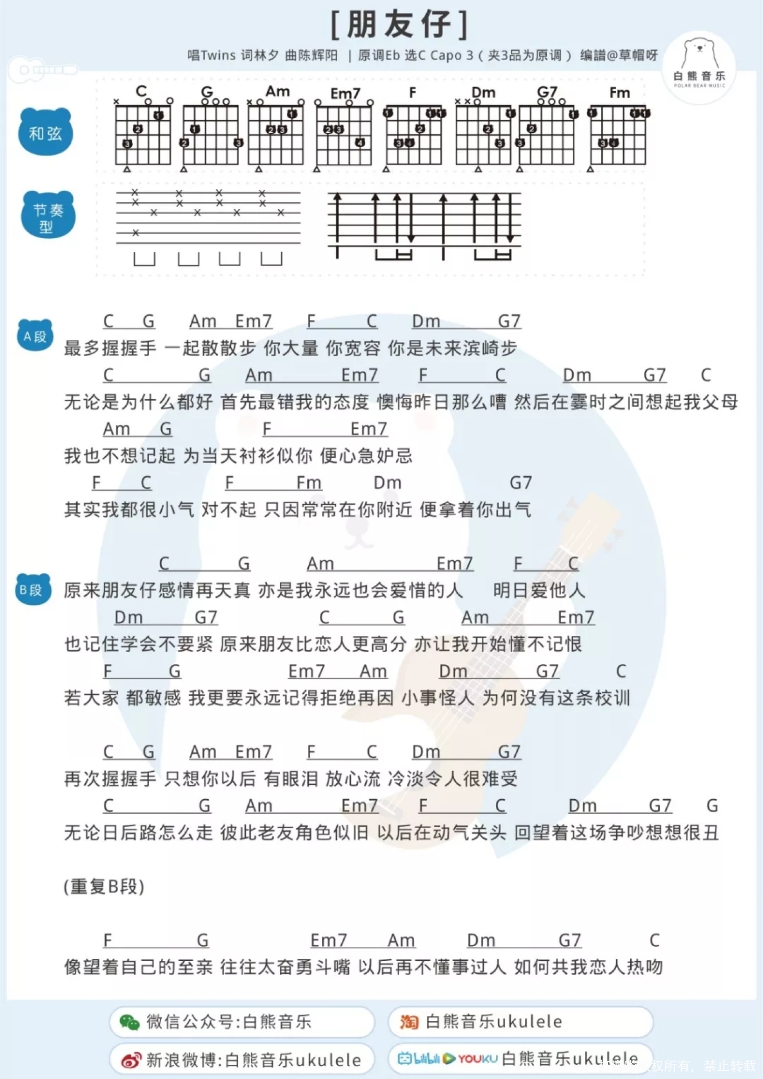曲谱介绍: 朋友仔Ukulele弹唱|丸子   朋友仔Ukulele弹唱教学   朋友仔尤克里里谱   朋友仔吉他谱