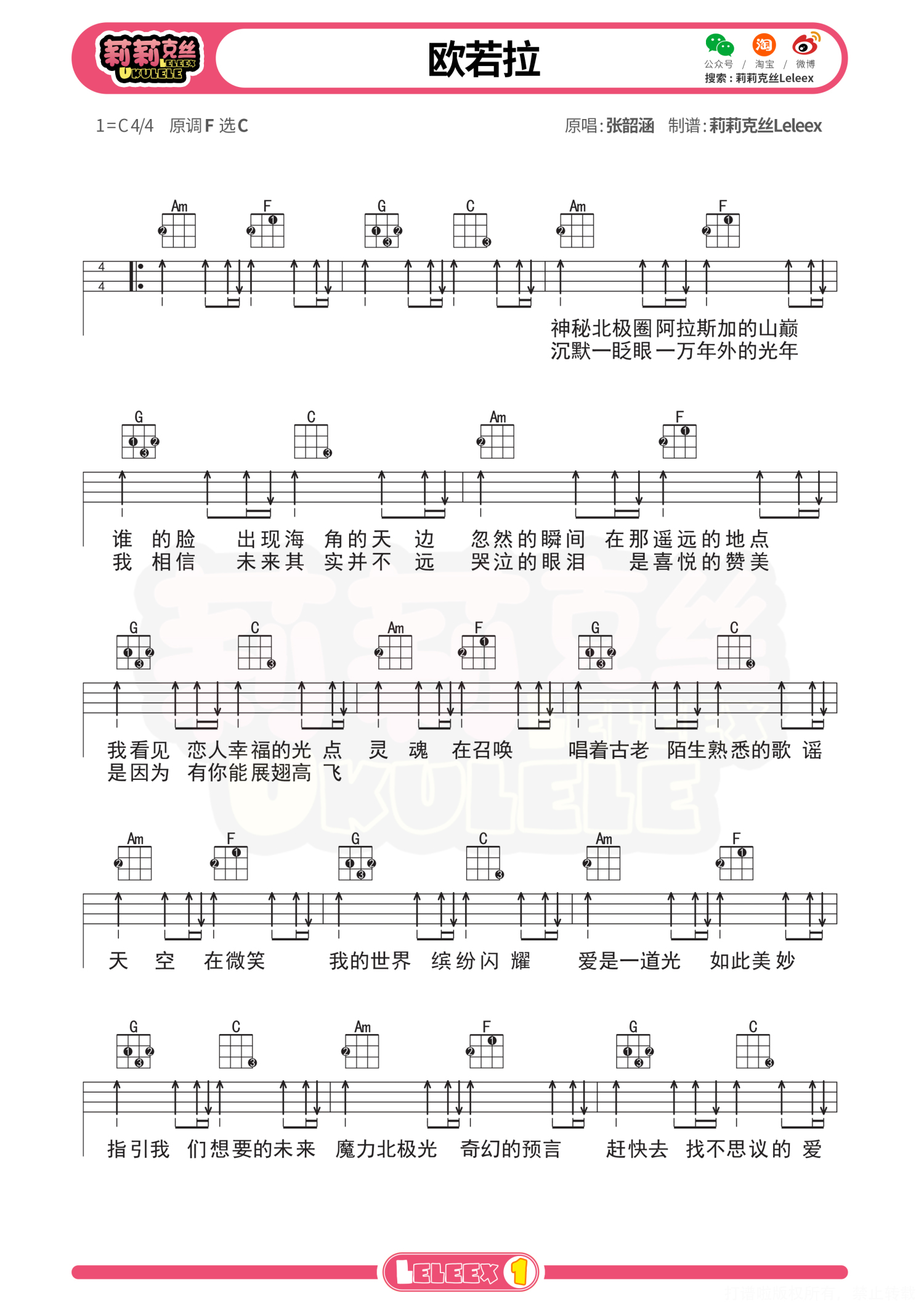曲谱介绍: 《欧若拉》尤克里里曲谱(张韶涵) 更多尤克里里曲谱/教学  关注@莉莉克丝Leleex