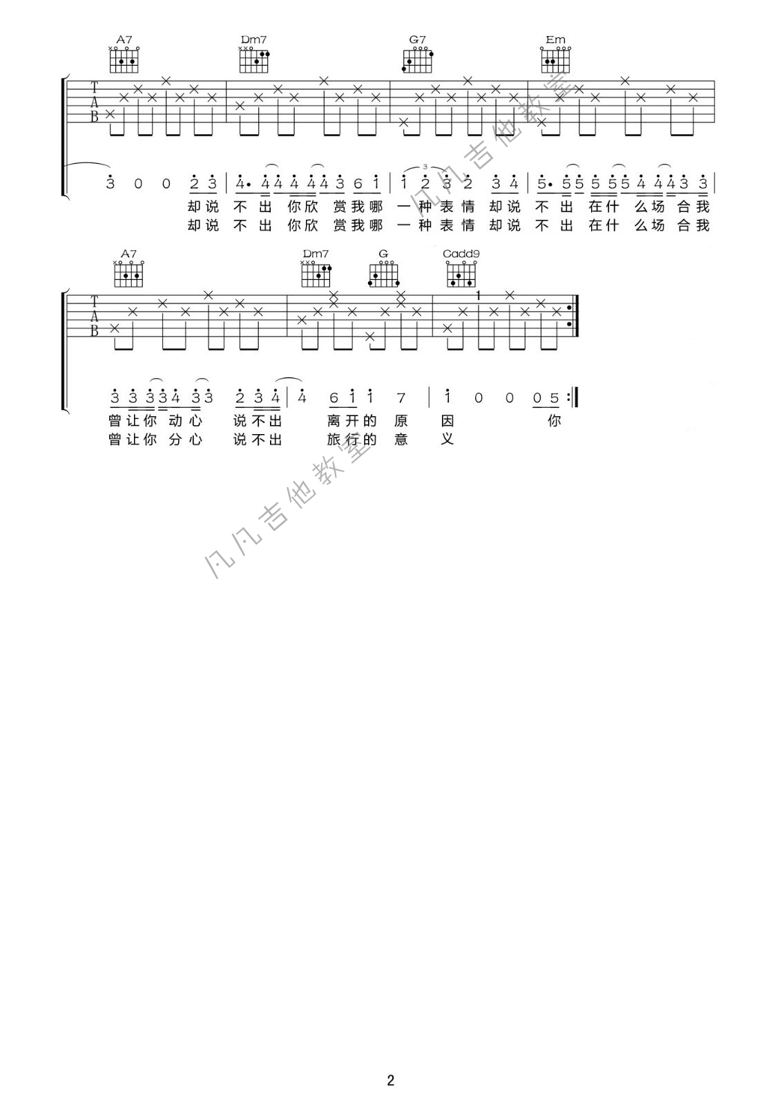吉他弹唱D调来源:凡凡吉他教室119 浏览2024-01-19 16:12发布图谱共2页