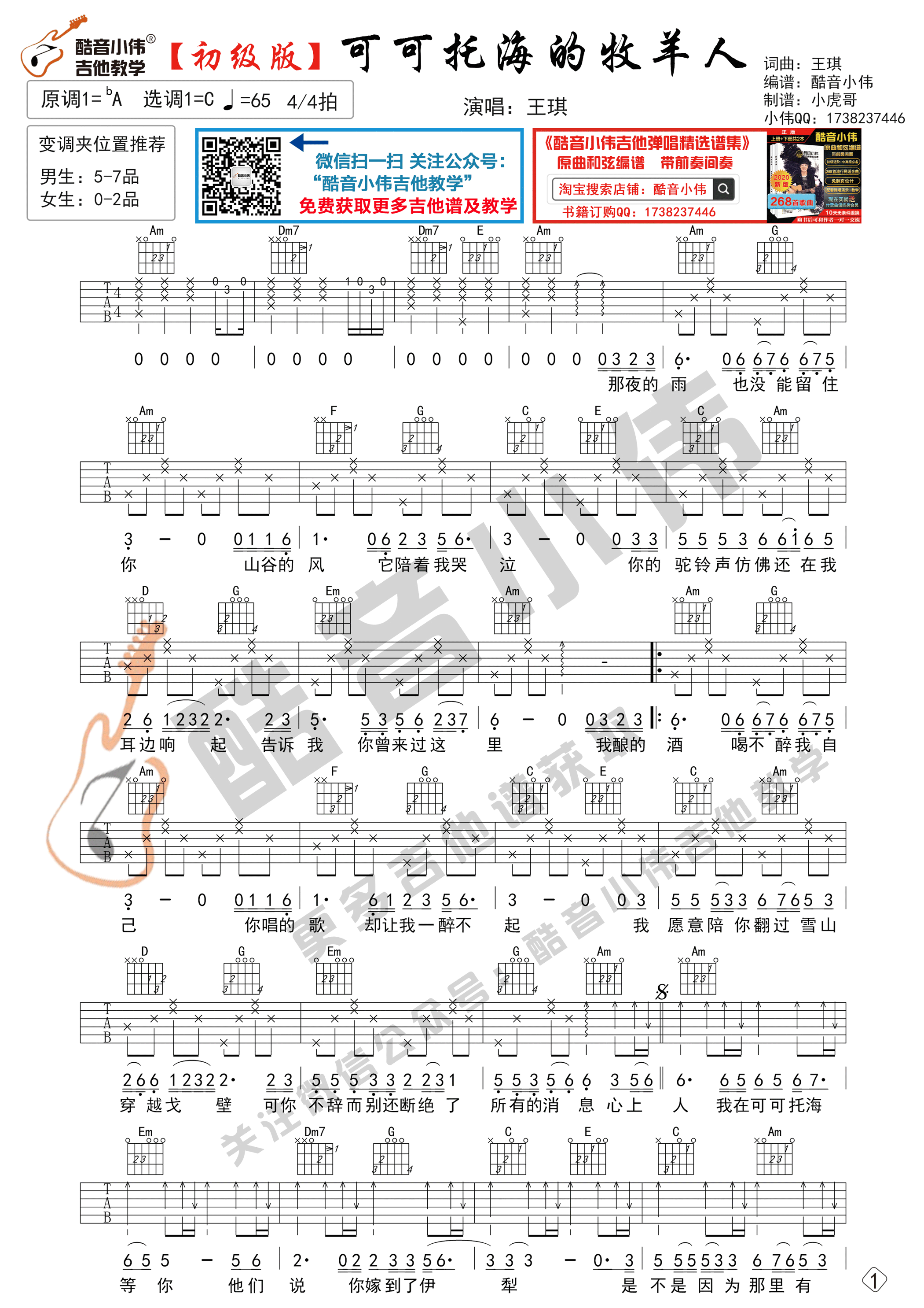 曲谱介绍: 曲谱适合初学者弹奏,选用C调指法,变调夹的位子可以根据我的推荐来选择。使用8分音符、16分音符分解伴奏型和扫弦伴奏型,可以帮助更好的练习,先弹奏会曲谱,再清唱会,然后弹唱结合一起练习。