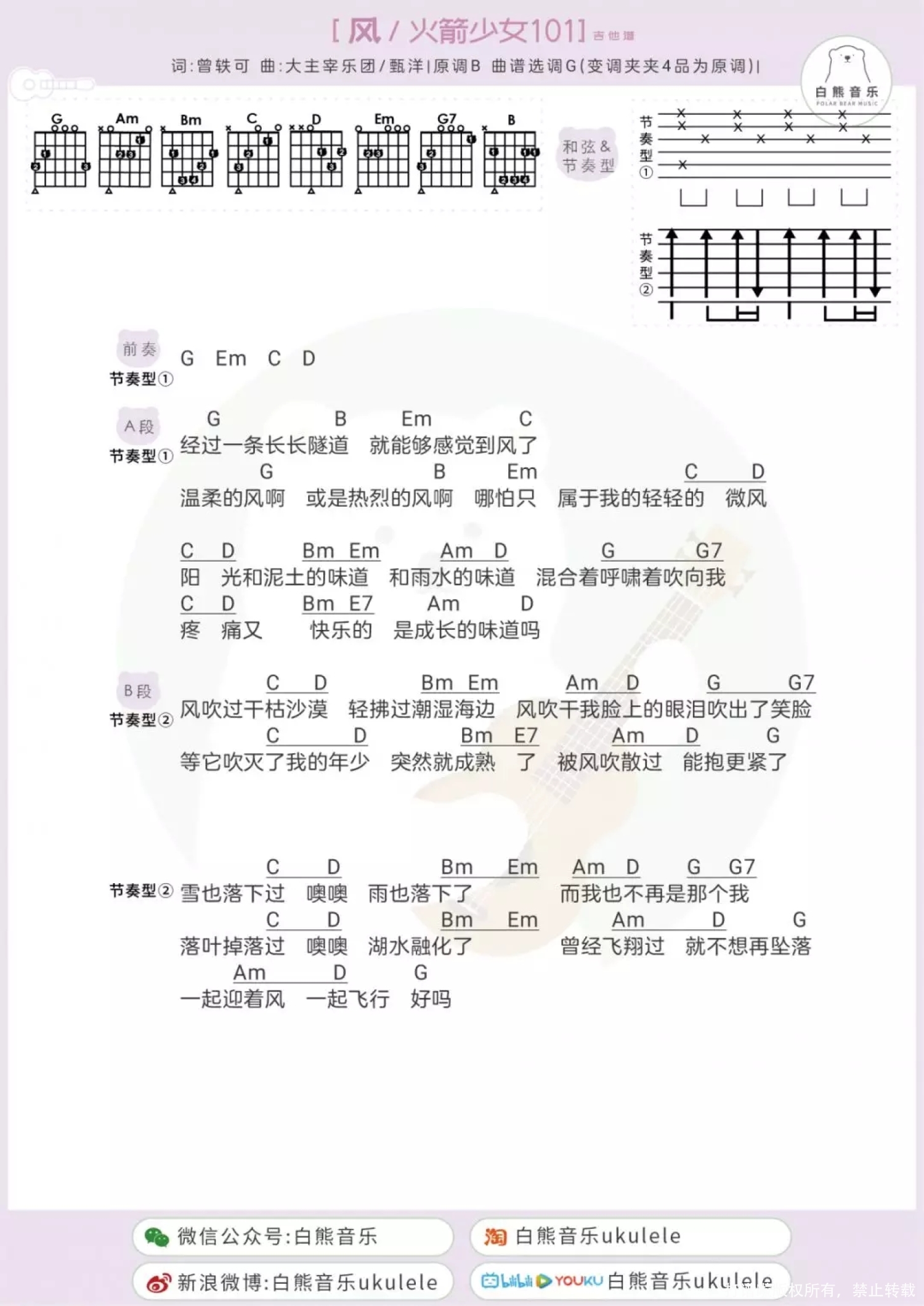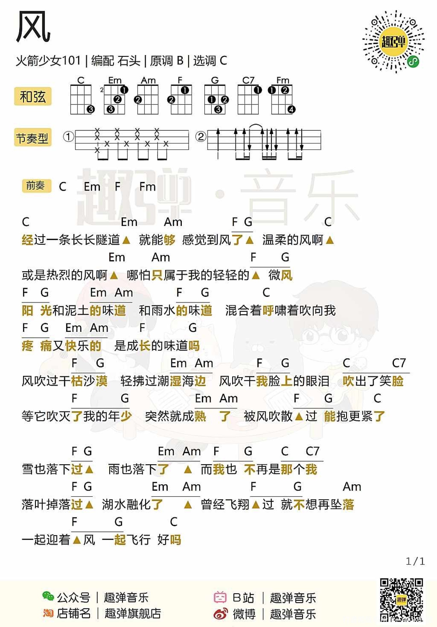 曲谱介绍: 风ukulele谱G调: 风ukulele谱C调:   风吉他谱: