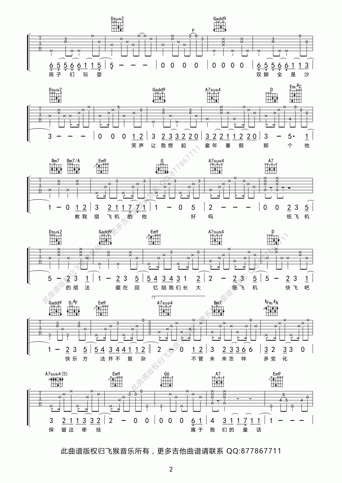 当前位置:琴谱网>吉他弹唱>纸飞机