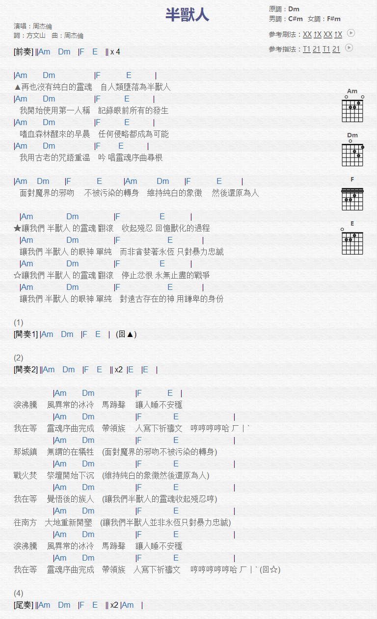 半兽人_吉他谱 - 半兽人 - 吉他弹唱谱