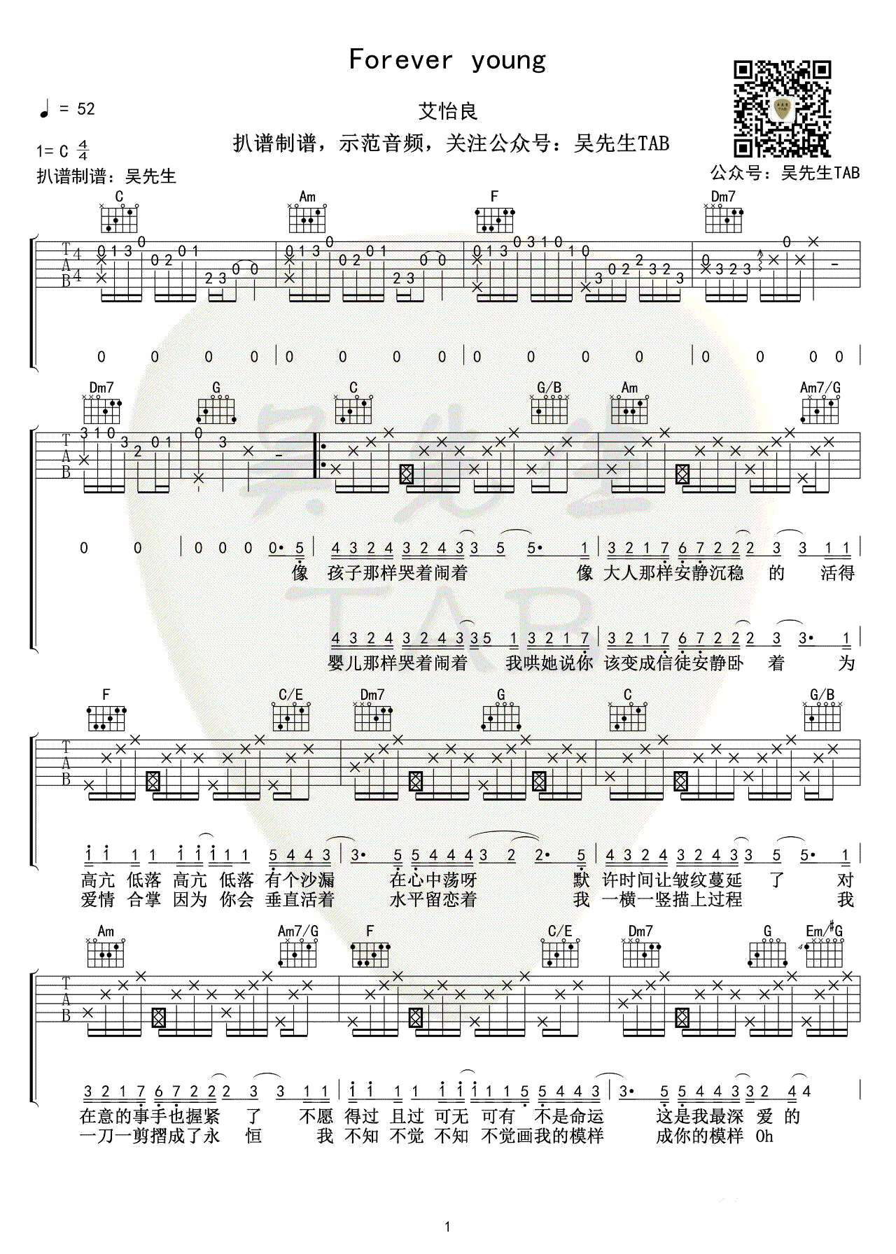 Forever young吉他谱 - 艾怡良 - C调吉他弹唱谱