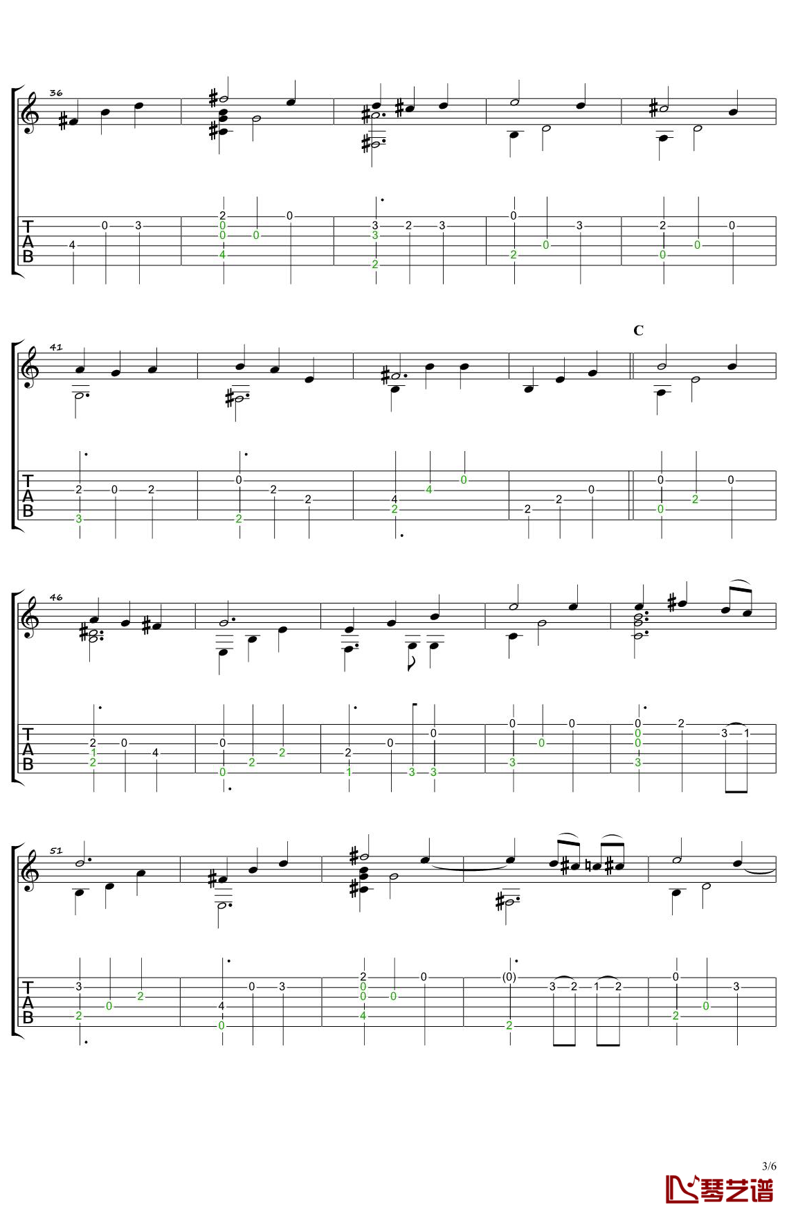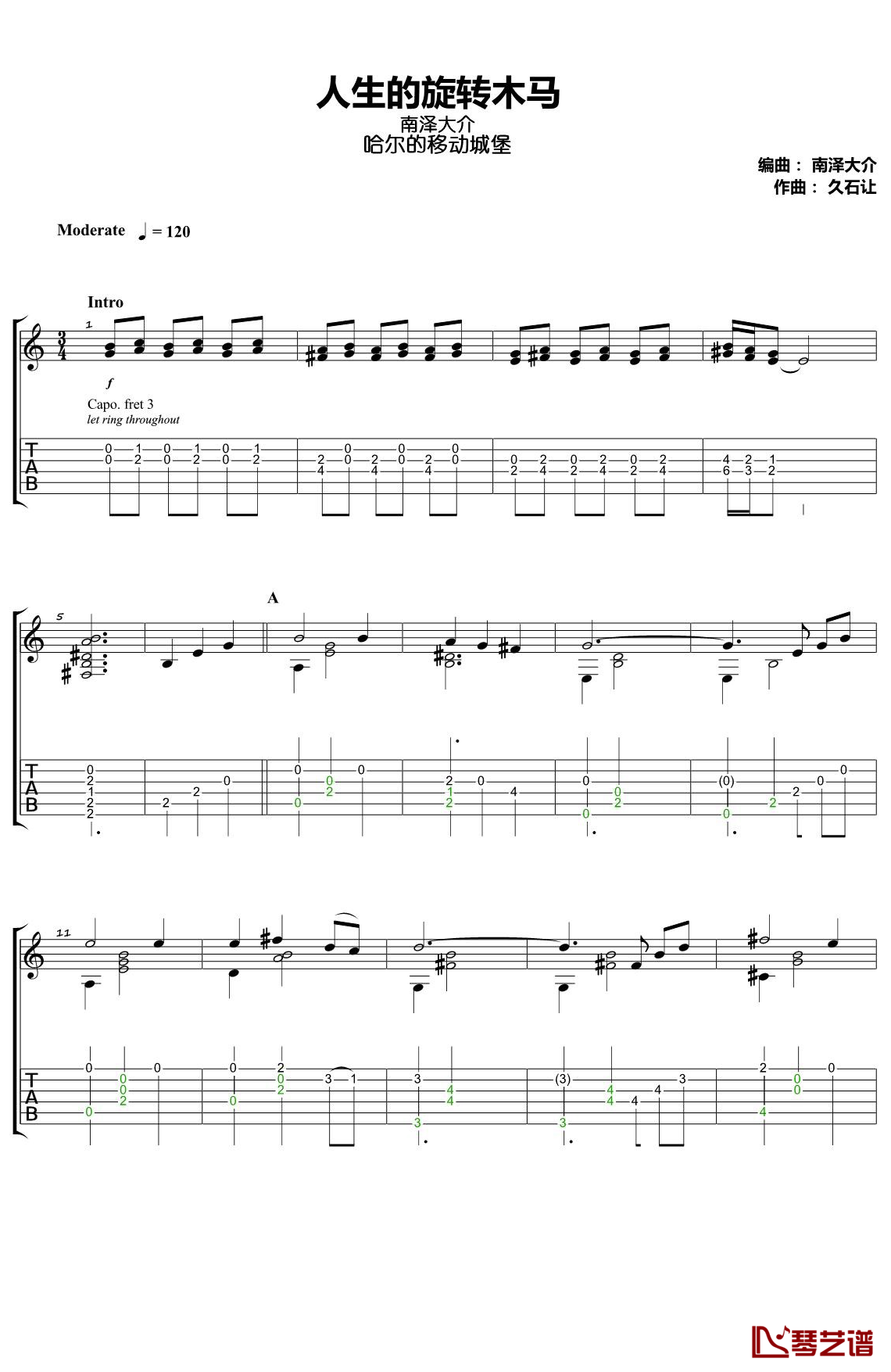曲谱介绍: 南泽大介《人生的旋转木马》吉他独奏谱,琴艺谱编配出品,共有6张高清图谱。