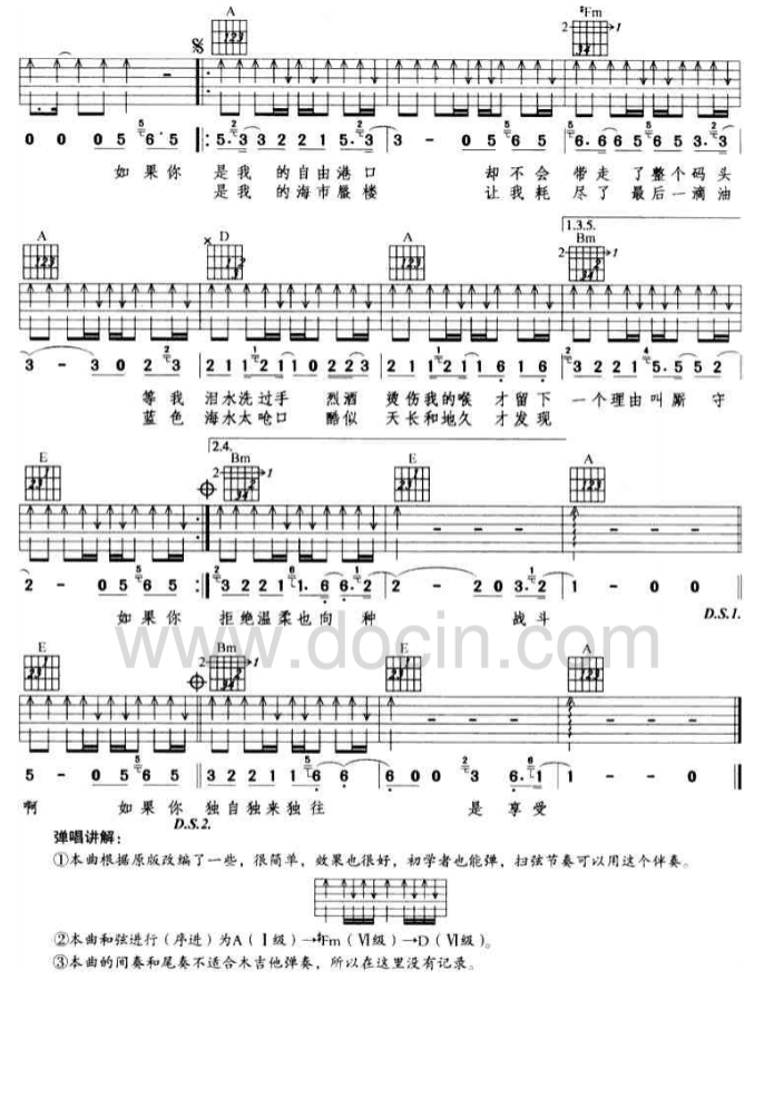 曲谱介绍: 陈晓东《自由港》吉他弹唱谱,采用A调指法编配,豆丁网编配出品,共有2张高清图谱,免翻页排版设计。