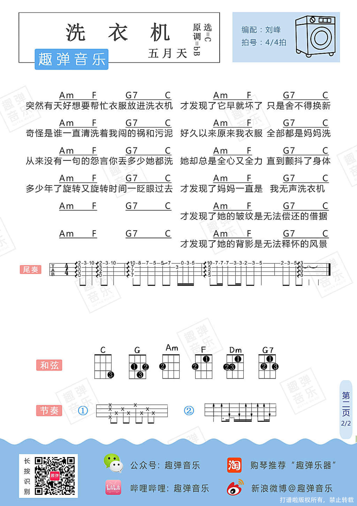 曲谱介绍: Aloha~今天要跟大家分享的歌曲是来自 五月天的「洗衣机」 这是一首越听越感动的歌曲 洗衣机只是家里平常的一个物件 就跟我们平时习惯了妈妈的存在一样 这首歌里用洗衣机隐喻妈妈的付出 呼吁大家多多关心母亲~ 洗衣机尤克里里谱