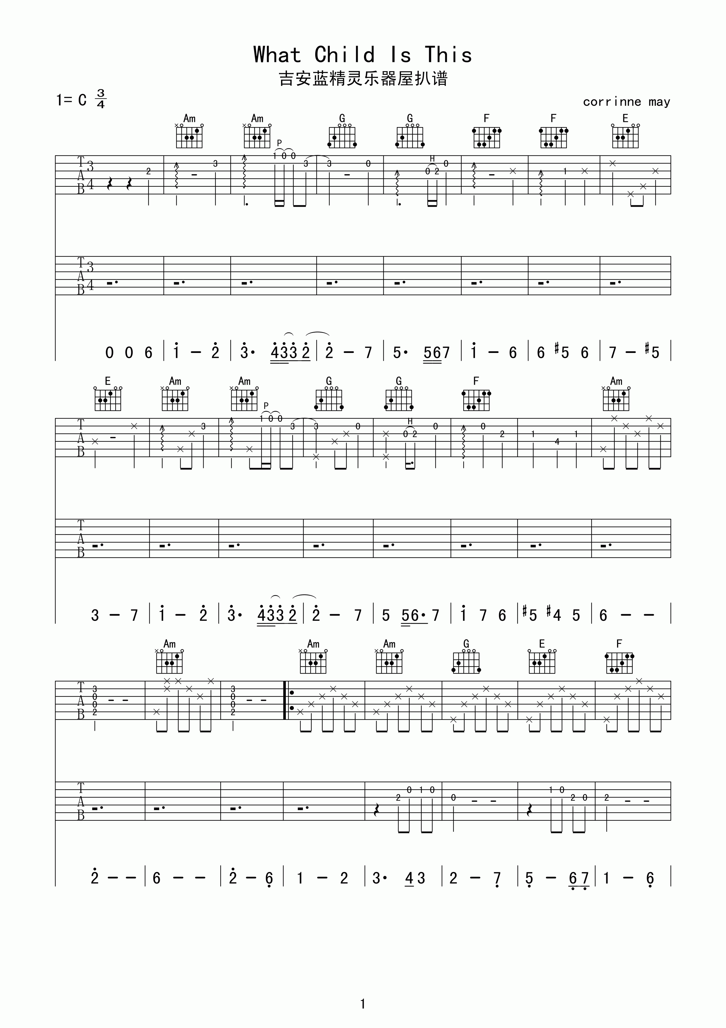 曲谱介绍: What《WhatChildIsThis》吉他弹唱谱,采用C调指法编配,蓝精灵乐器编配出品,共有4张高清图谱。