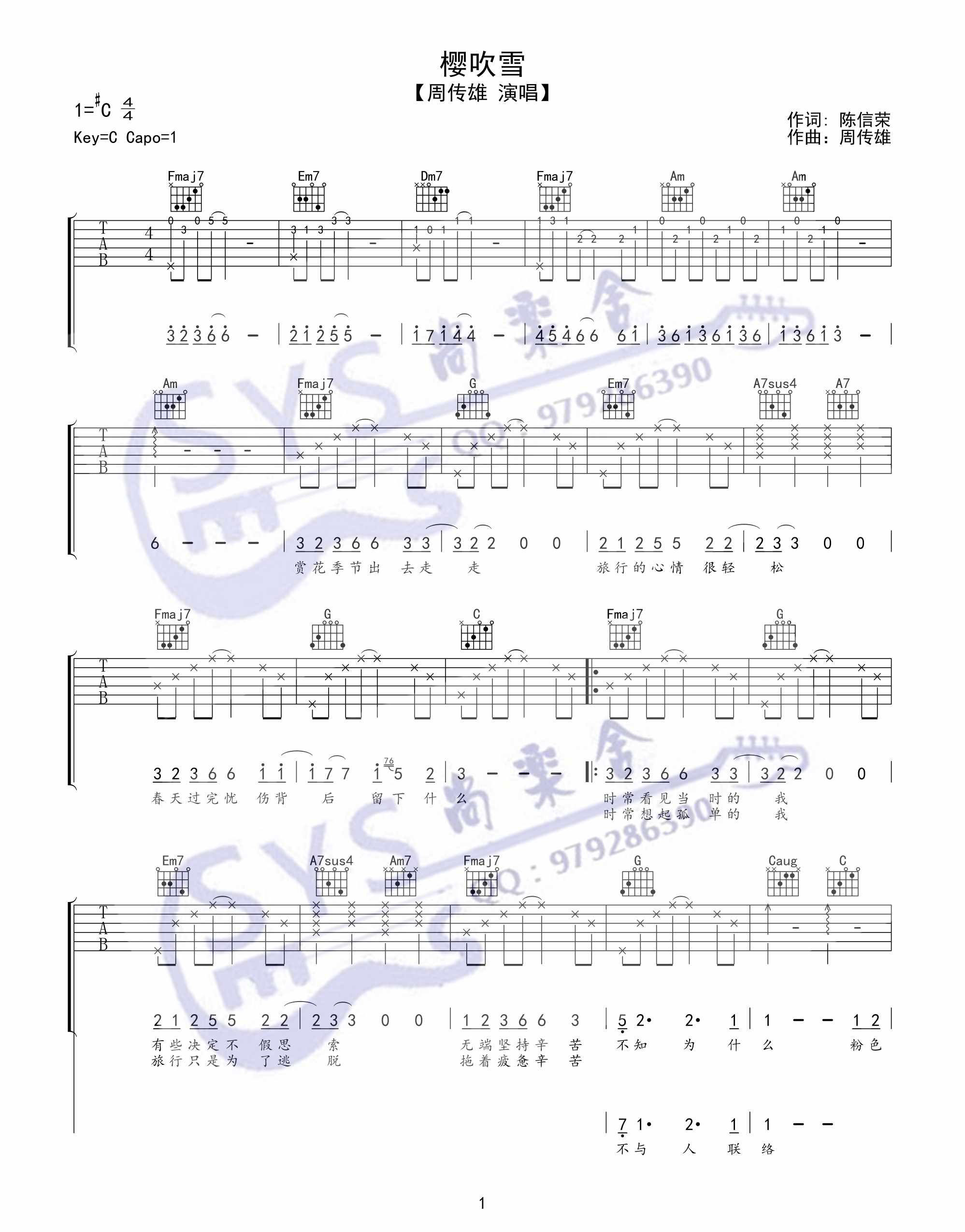 樱吹雪吉他谱 - 周传雄 - C调吉他弹唱谱