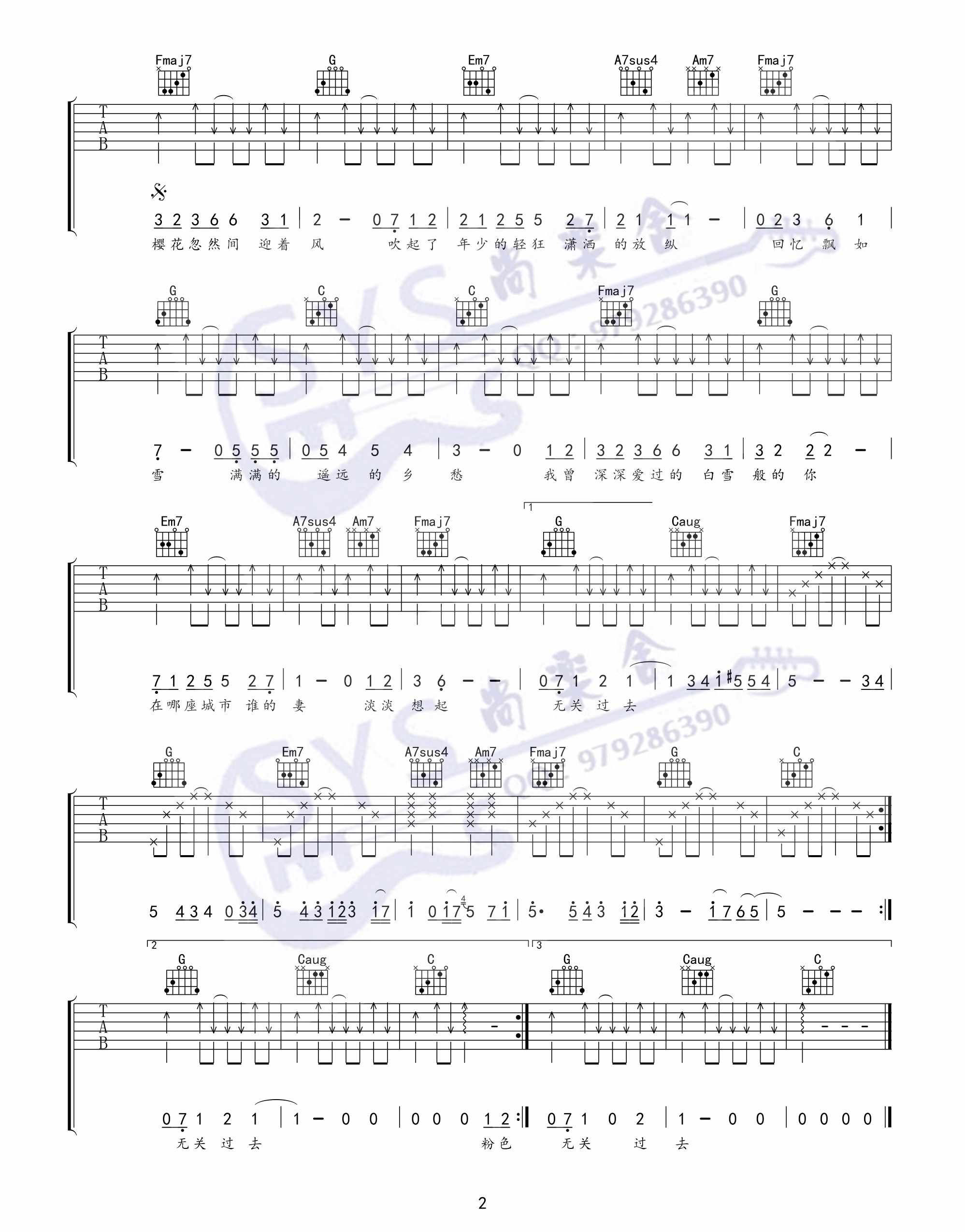 曲谱介绍: 周传雄《樱吹雪》吉他弹唱谱,采用C调指法编配,尚乐舍编配出品,共有2张高清图谱,免翻页排版设计。