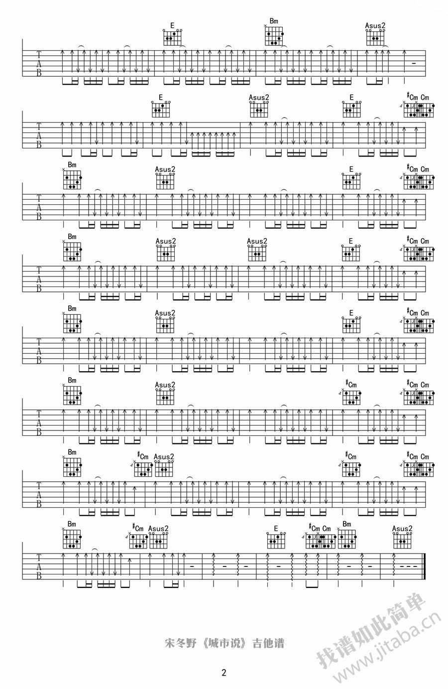曲谱介绍: 宋冬野《城市说》吉他弹唱谱,采用B调指法编配,吉他吧编配出品,共有2张高清图谱,免翻页排版设计。