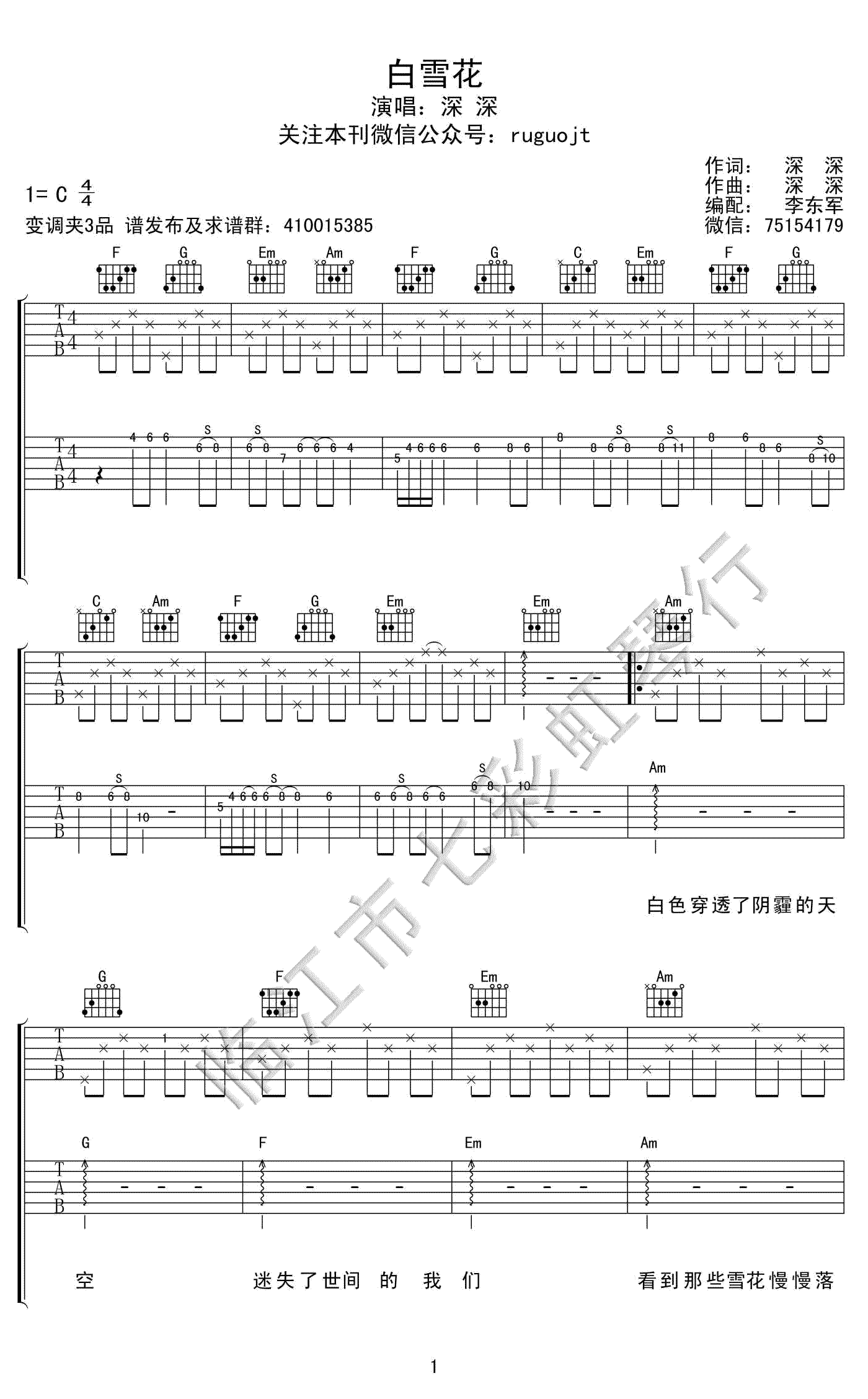 白雪花吉他谱 - 深深 - C调吉他弹唱谱