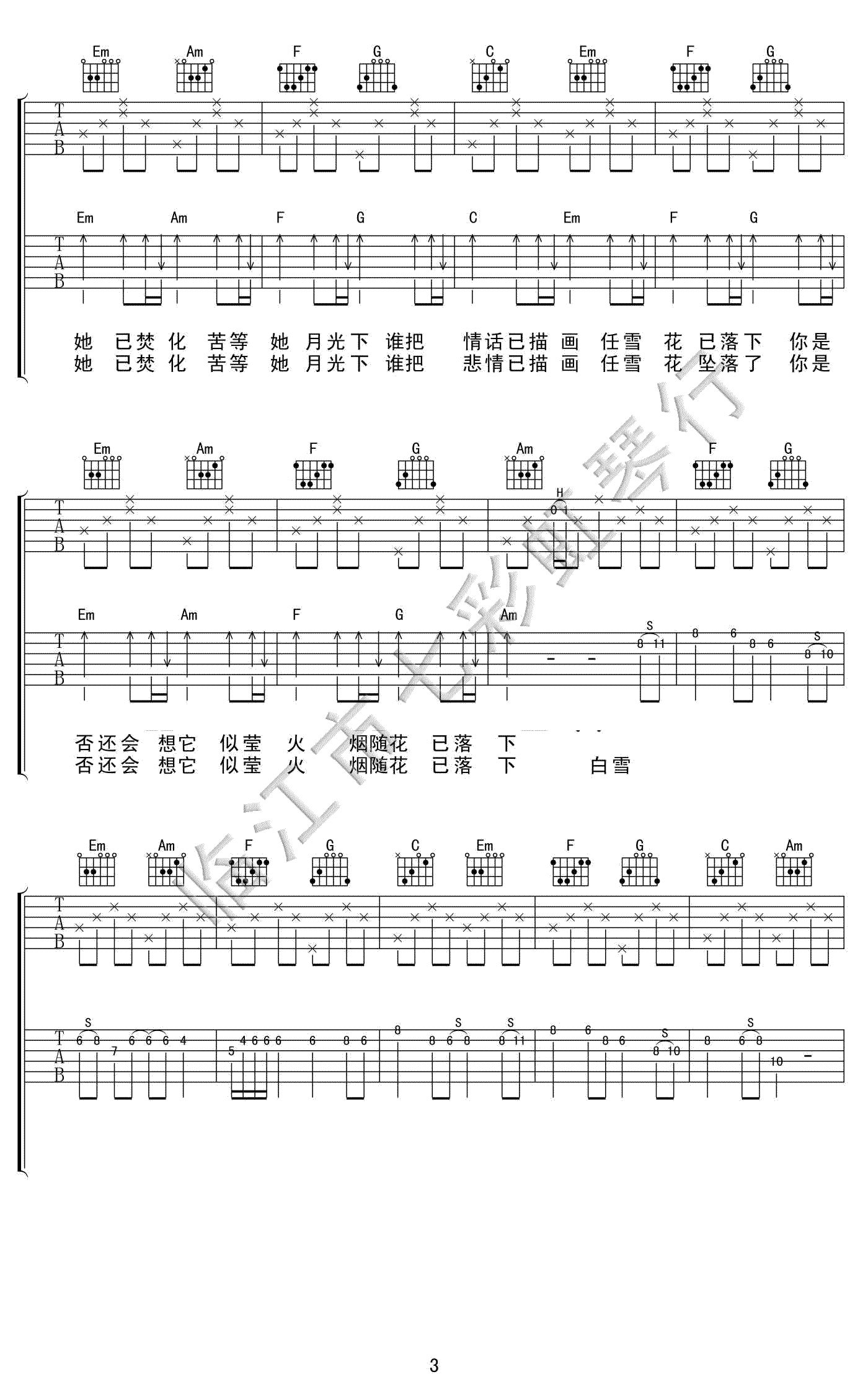 当前位置:琴谱网>吉他弹唱>白雪花