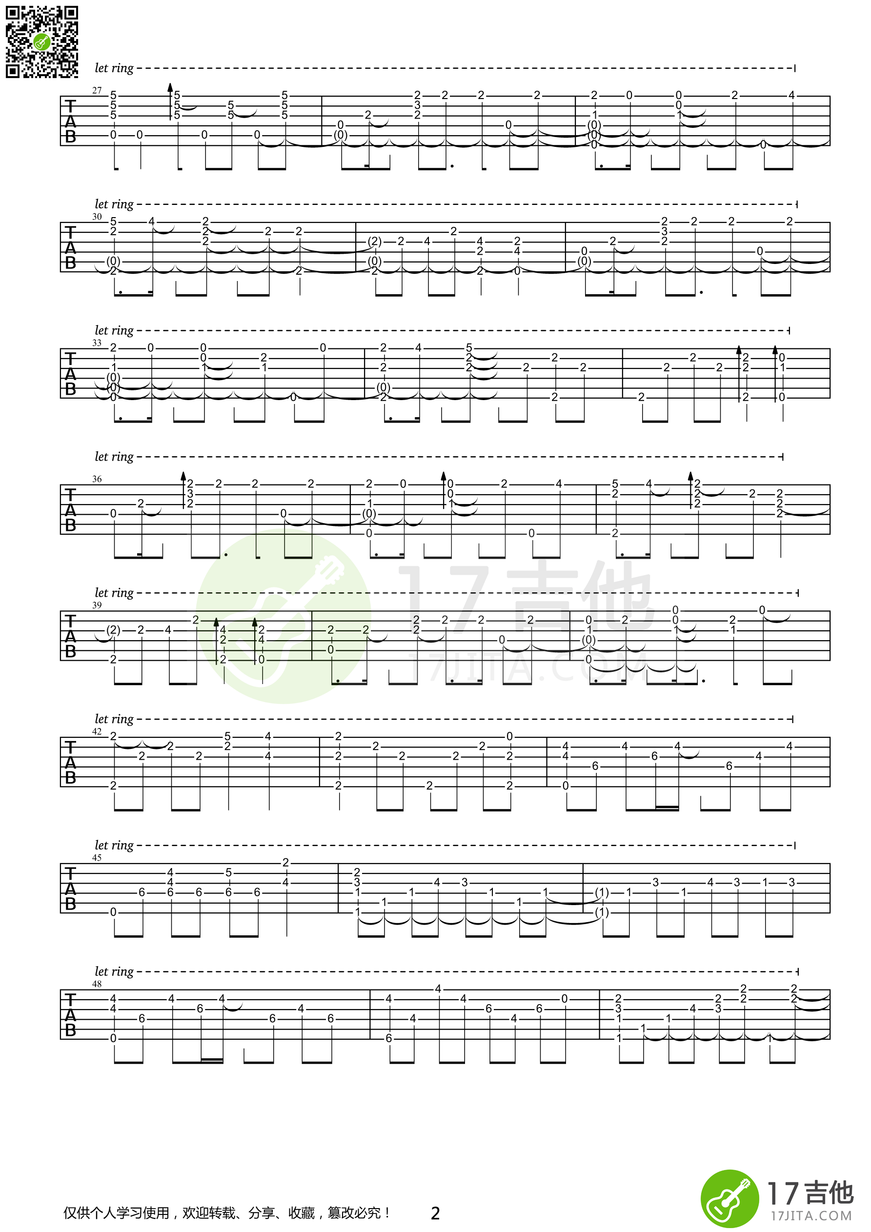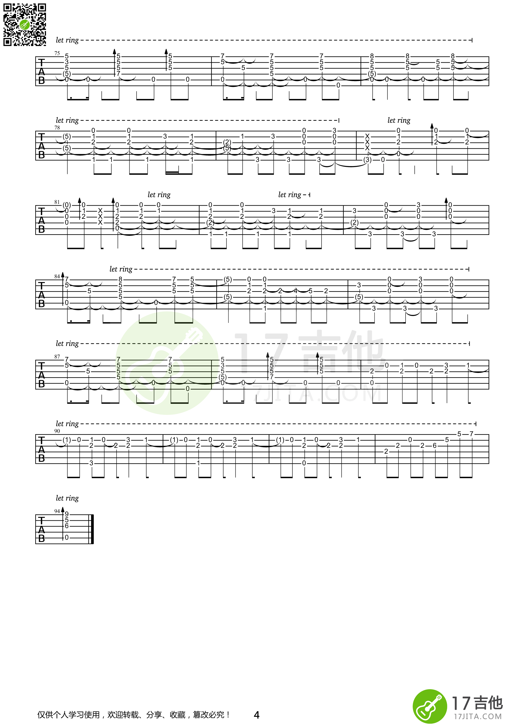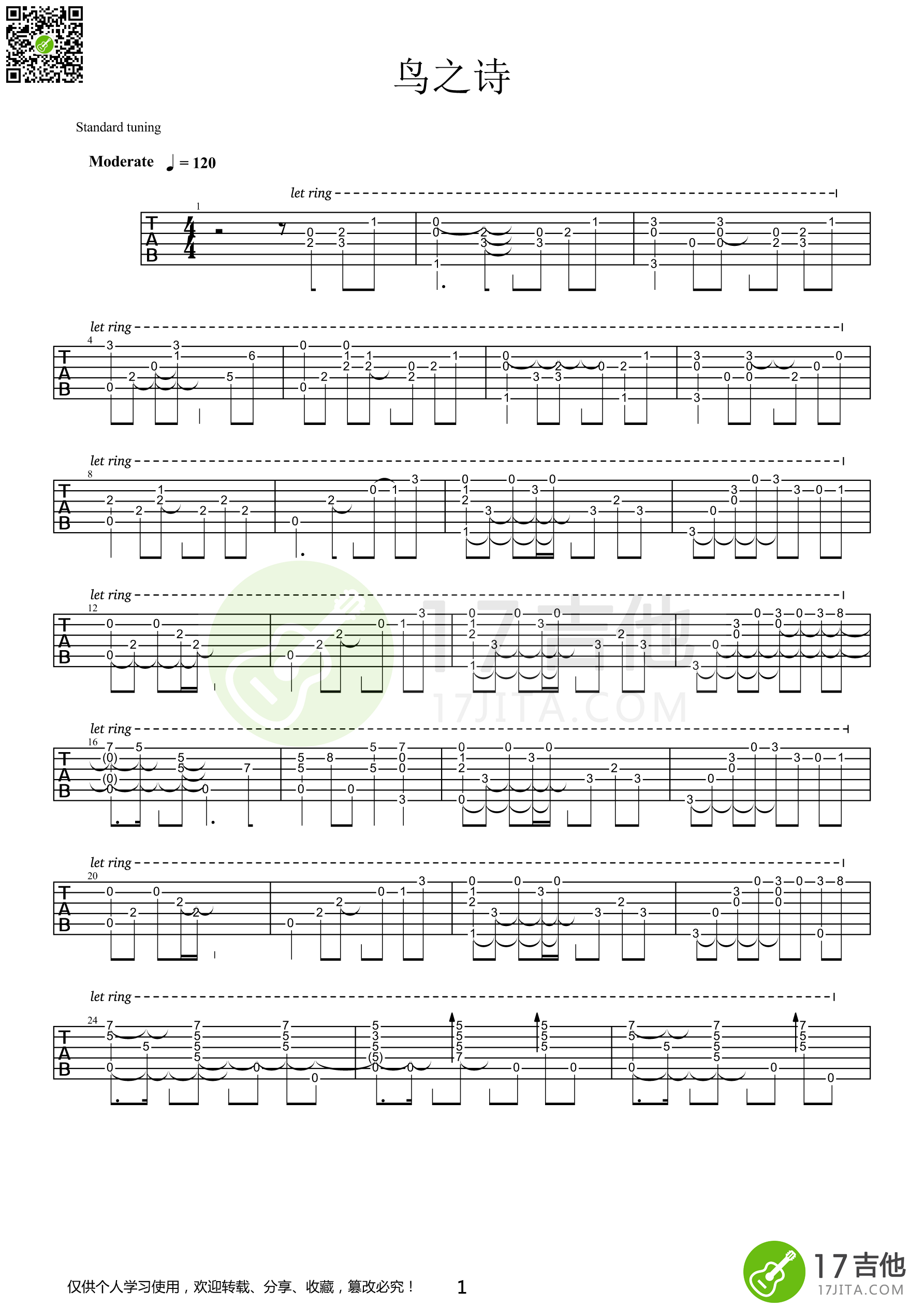 曲谱介绍: Air《鸟之诗》吉他独奏谱,17吉他编配出品,共有4张高清图谱。