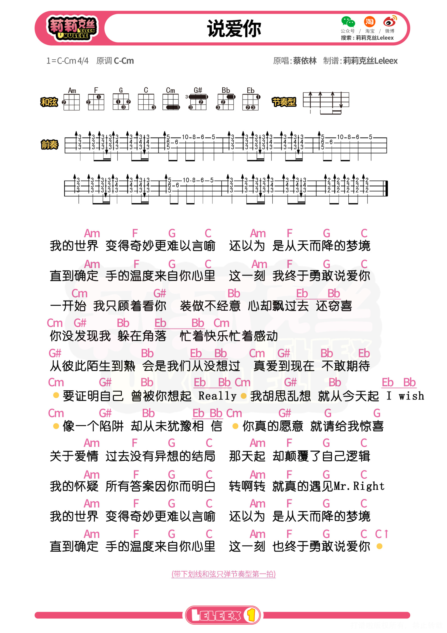 曲谱介绍: 「说爱你」尤克里里曲谱(蔡依林)莉莉克丝Leleex 更多尤克里里曲谱/教学  关注@莉莉克丝Leleex