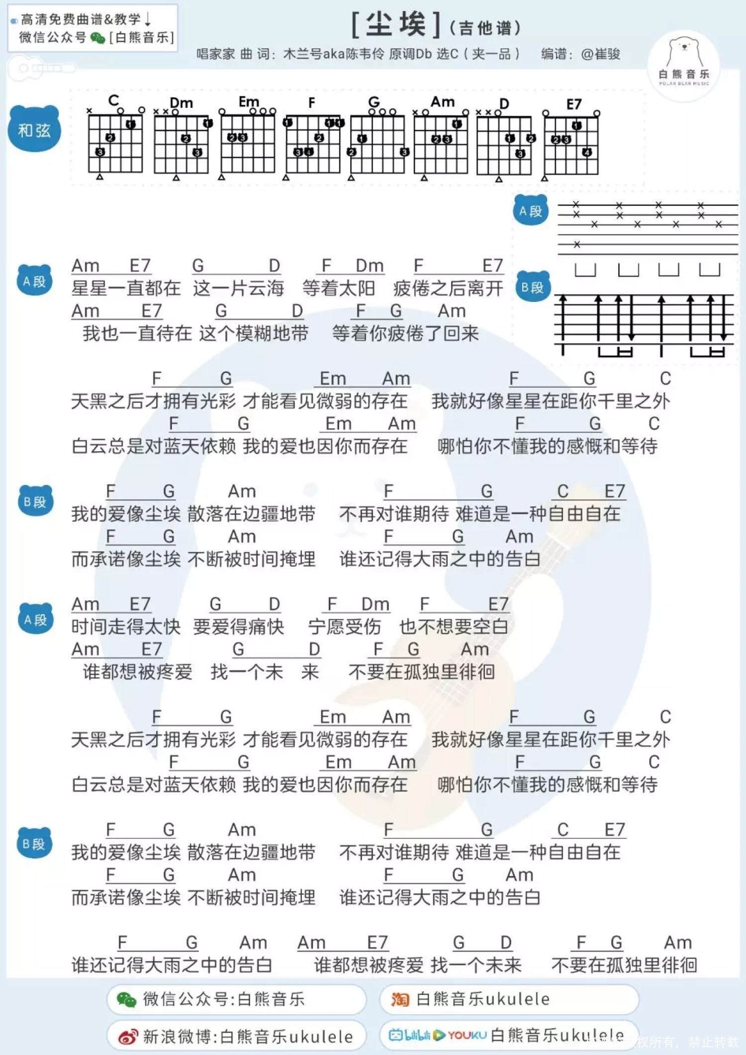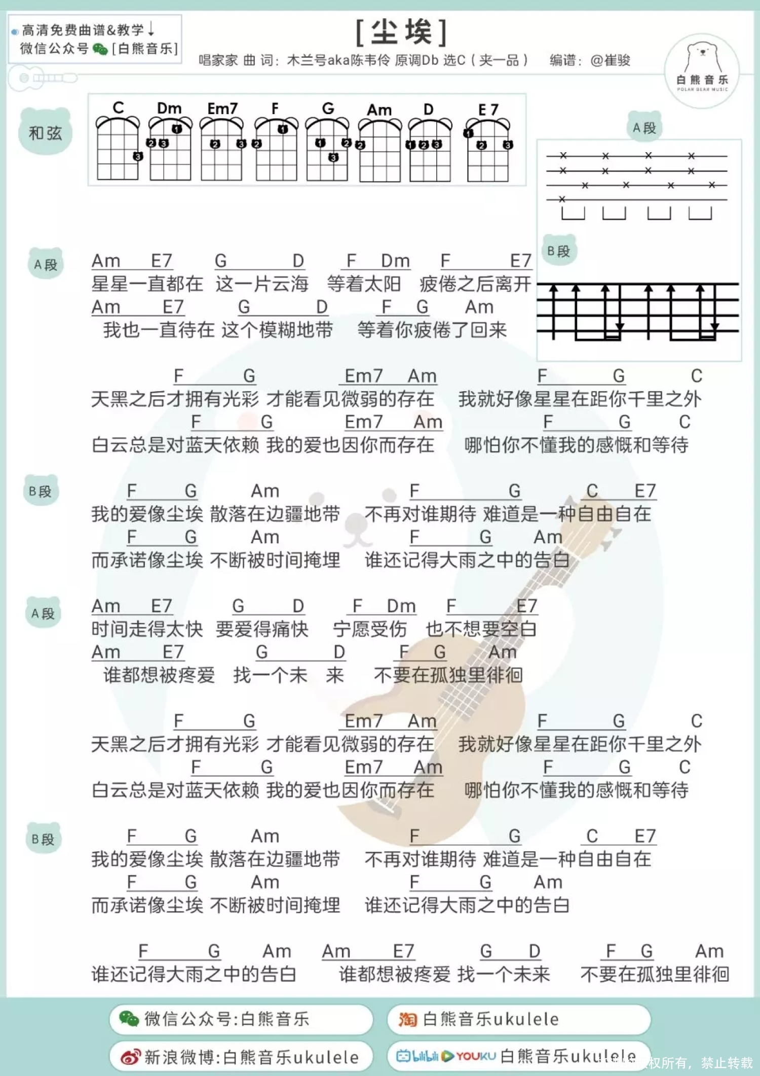 尘埃尤克里里谱 - 许魏洲