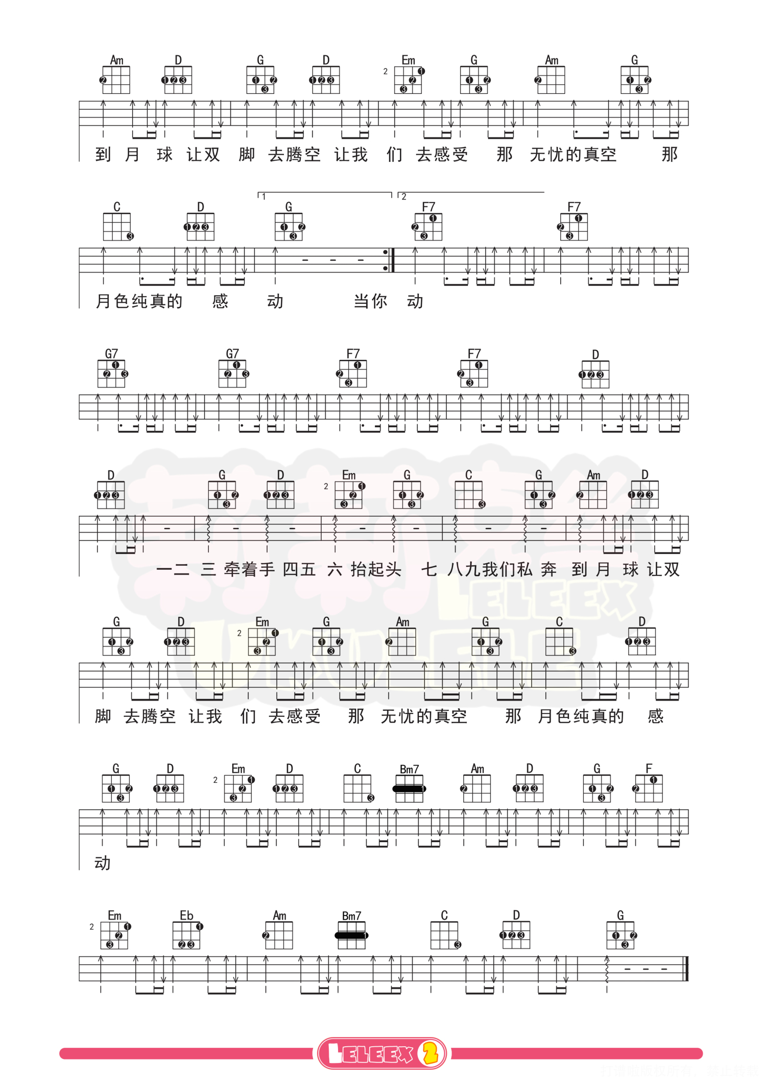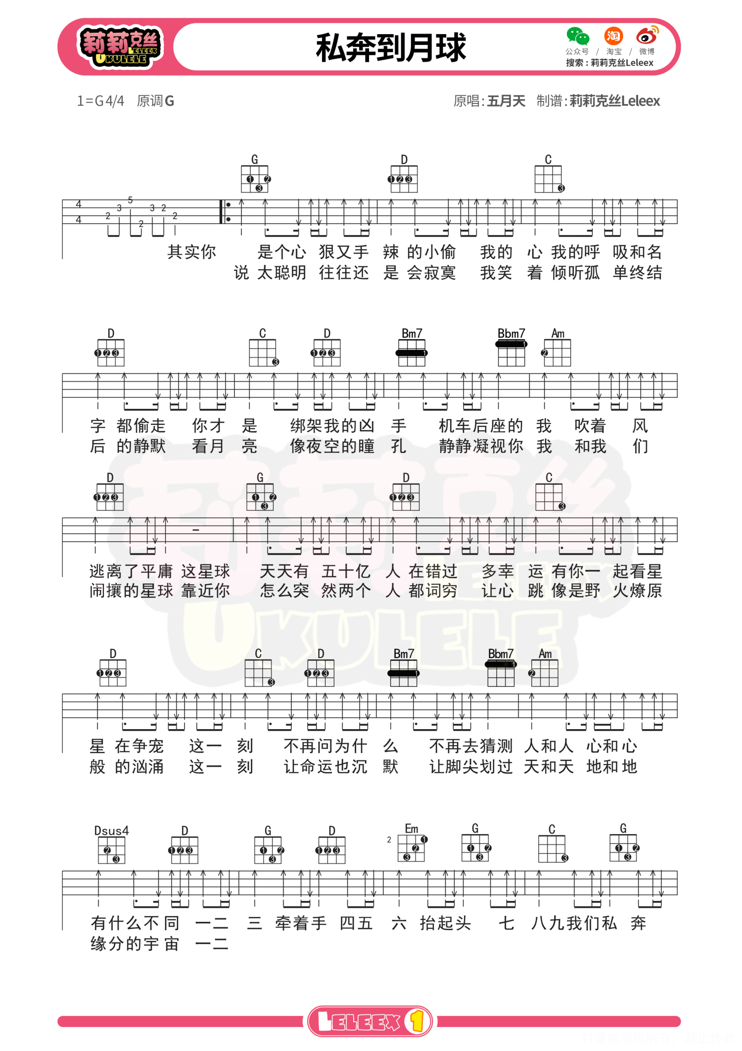 曲谱介绍: 「私奔到月球」尤克里里曲谱+教学(五月天) 弹唱示范 弹唱教学 曲谱 更多尤克里里曲谱/教学  关注@莉莉克丝Leleex
