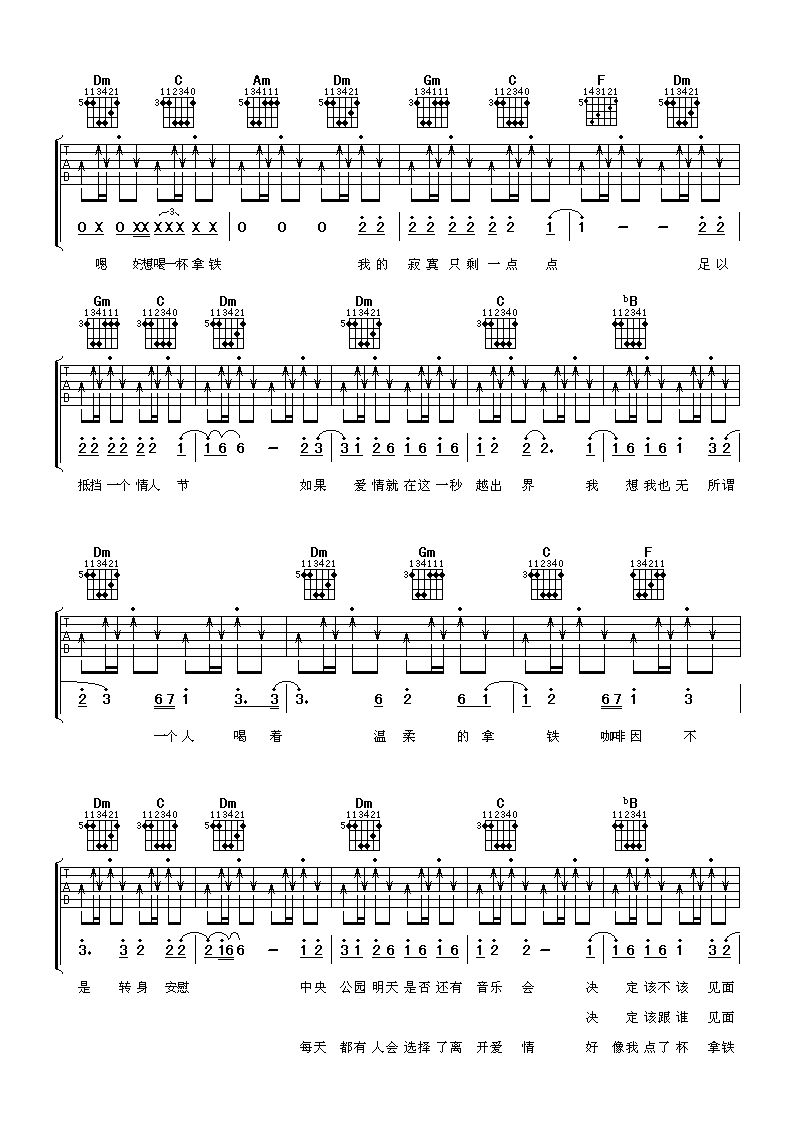 当前位置:琴谱网>吉他弹唱>一个人喝着拿铁