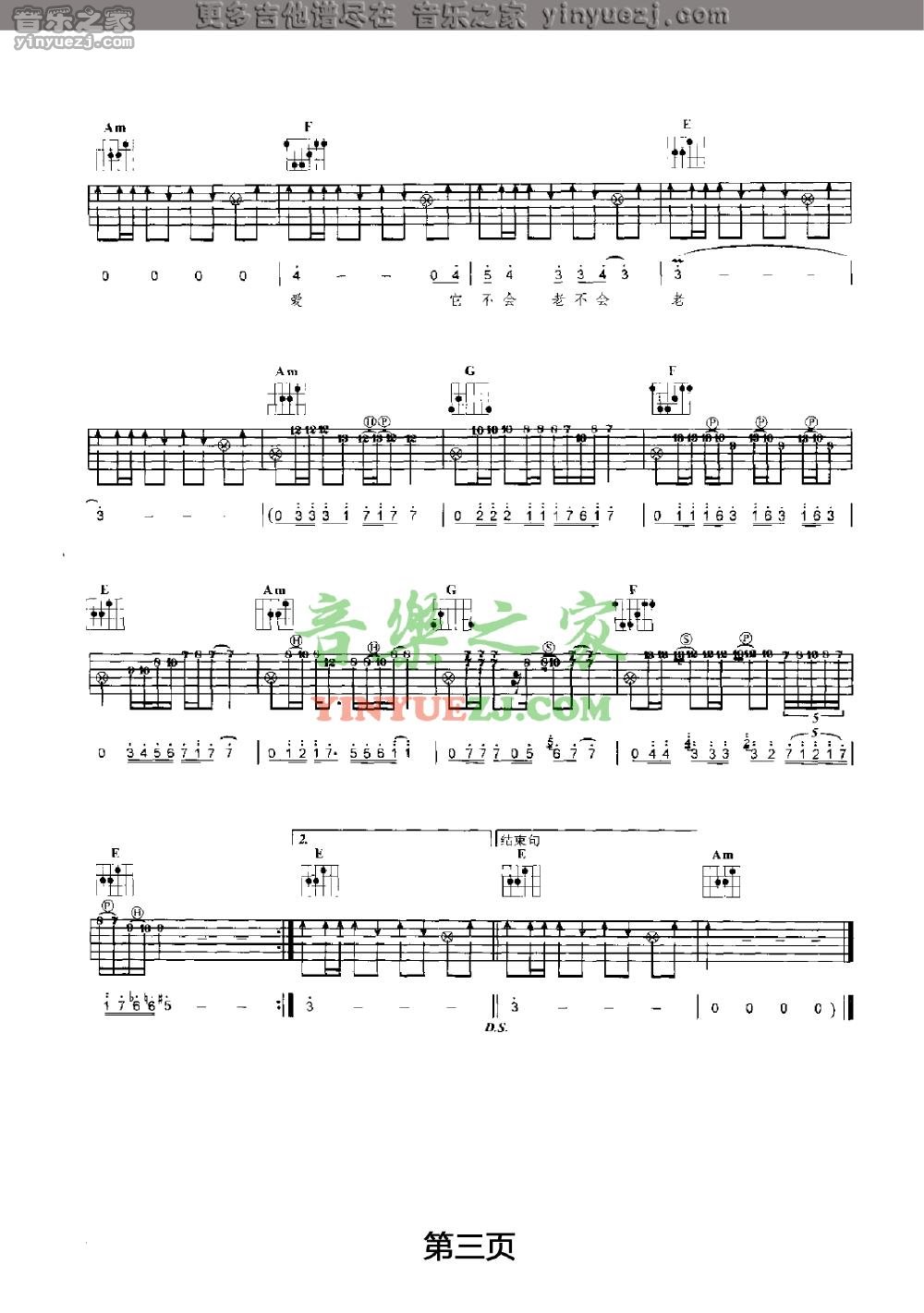 曲谱介绍: 水木年华《美丽人生》吉他弹唱谱,采用A调指法编配,音乐之家编配出品,共有3张高清图谱。