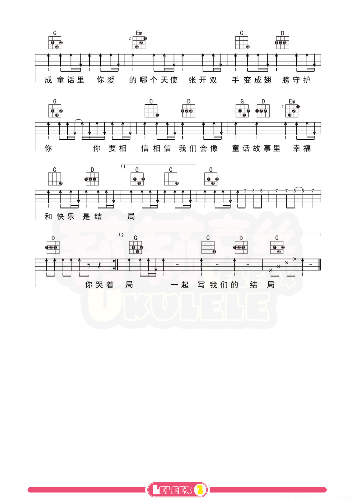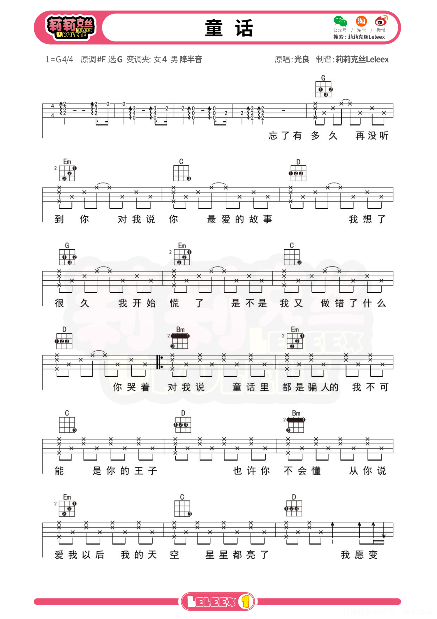 曲谱介绍: 「童话」尤克里里曲谱 更多尤克里里曲谱/教学  关注@莉莉克丝Leleex