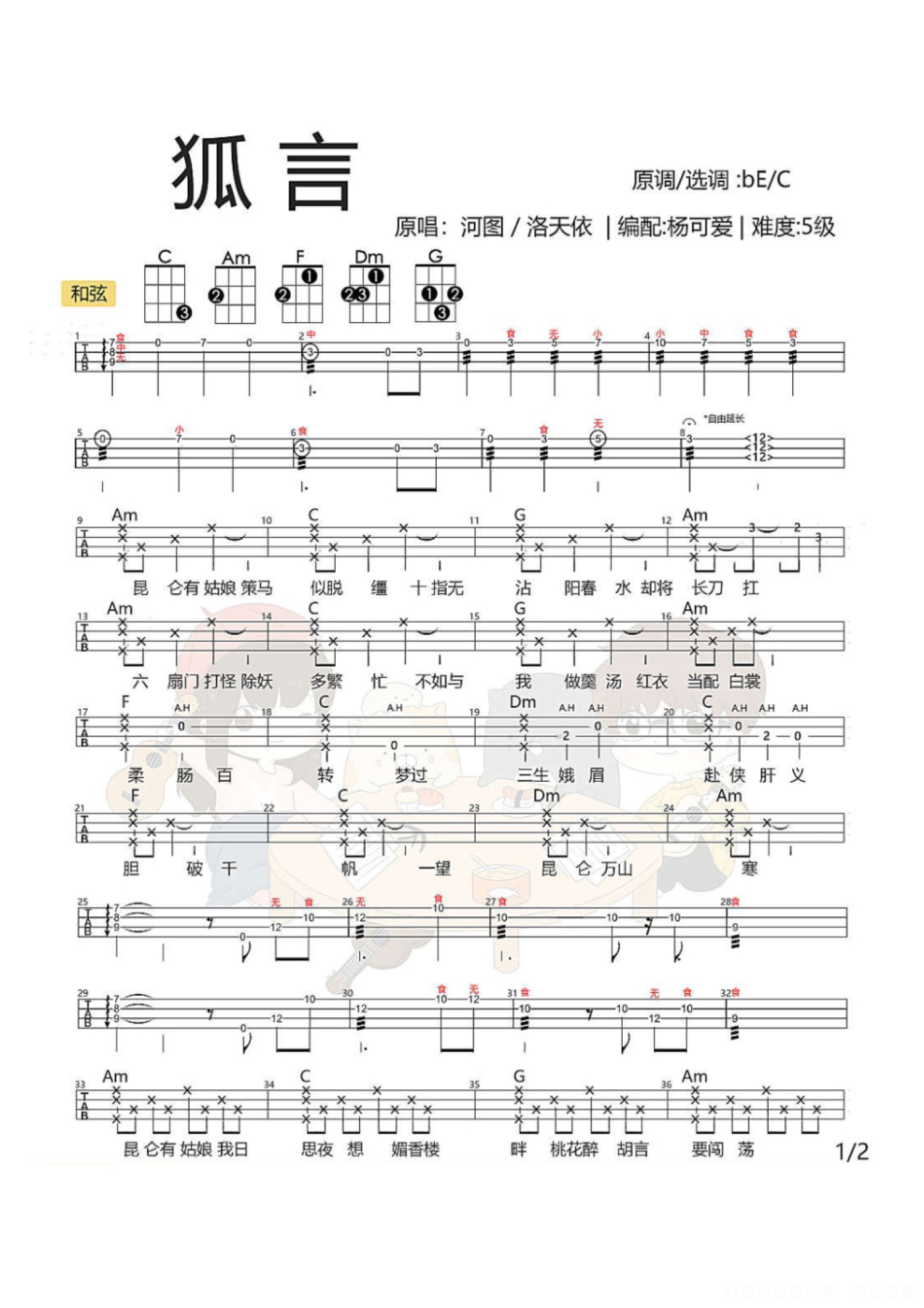 曲谱介绍: 狐言ukulele cover 柔情改编 by 杨可爱