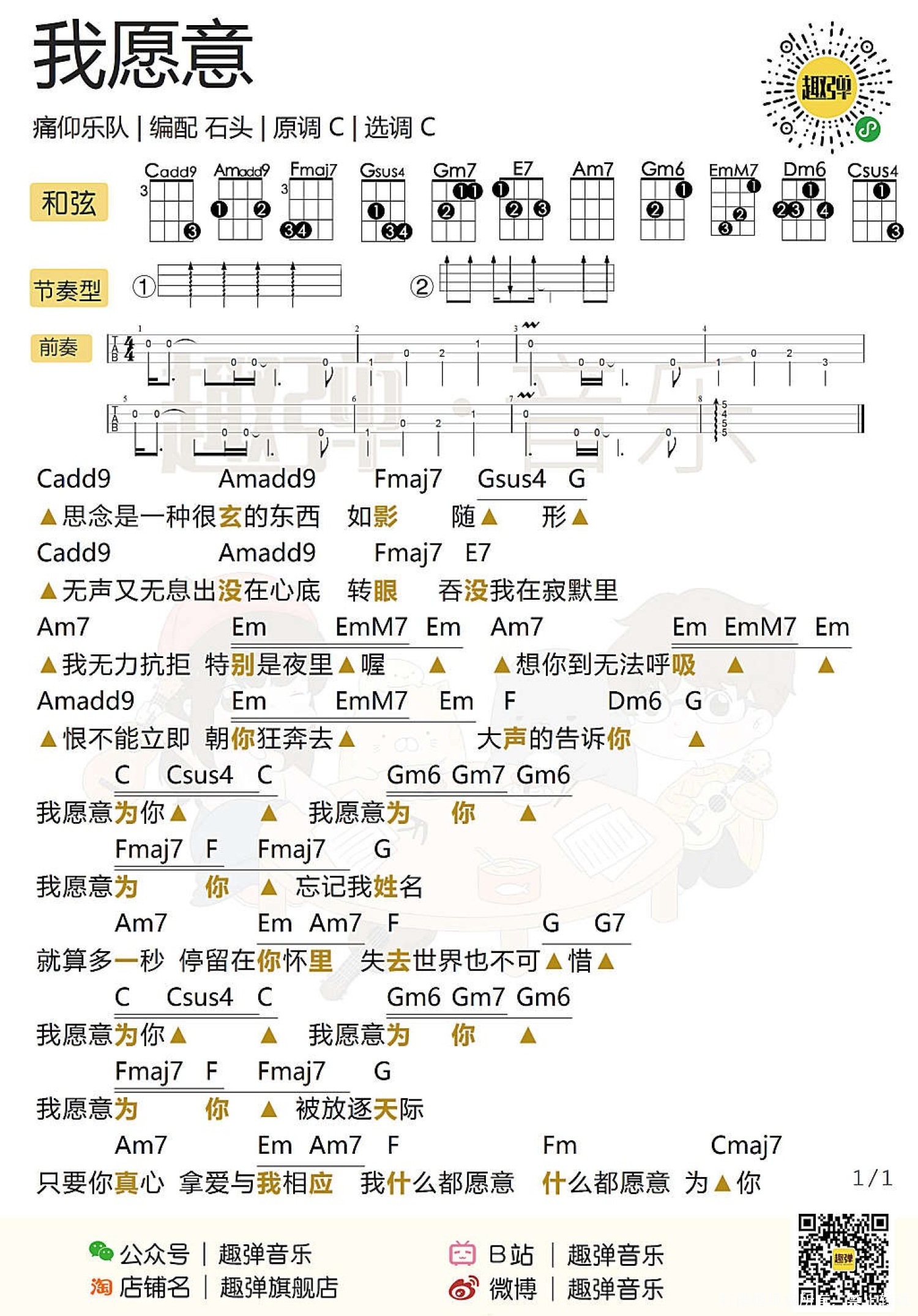当前位置:琴谱网>尤克里里>我愿意