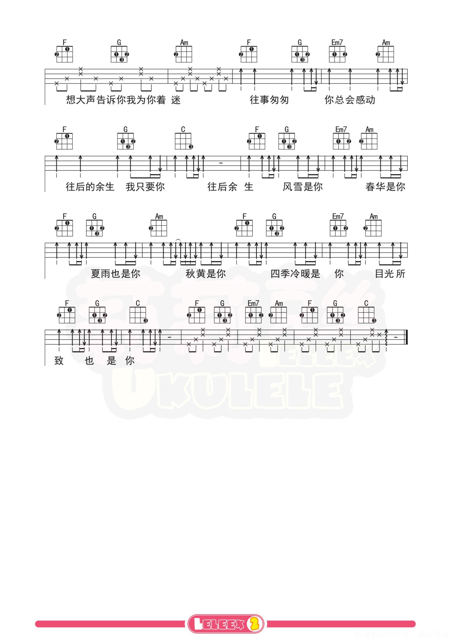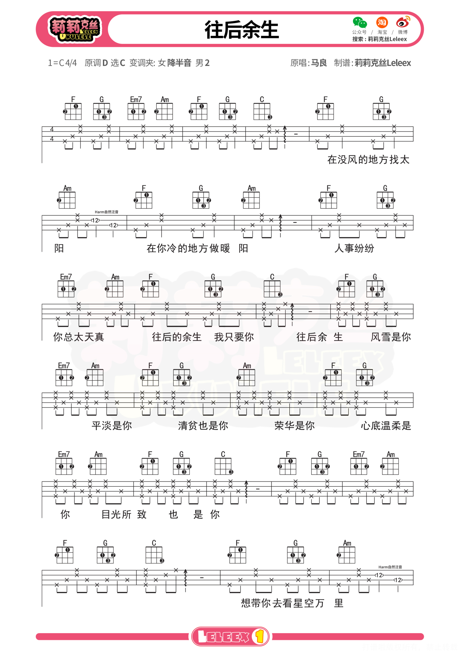 曲谱介绍: 「往后余生」尤克里里曲谱 更多尤克里里曲谱/教学  关注@莉莉克丝Leleex
