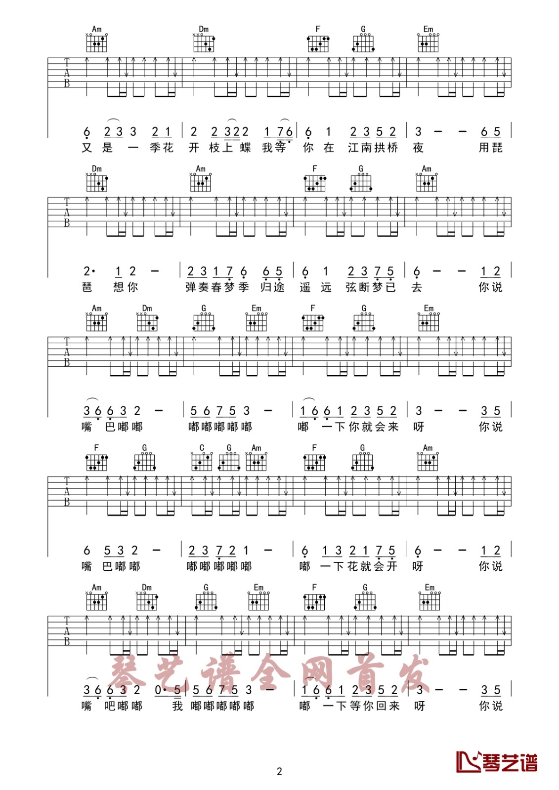 吉他弹唱D调来源:琴艺谱155 浏览2024-01-19 22:13发布图谱共3页