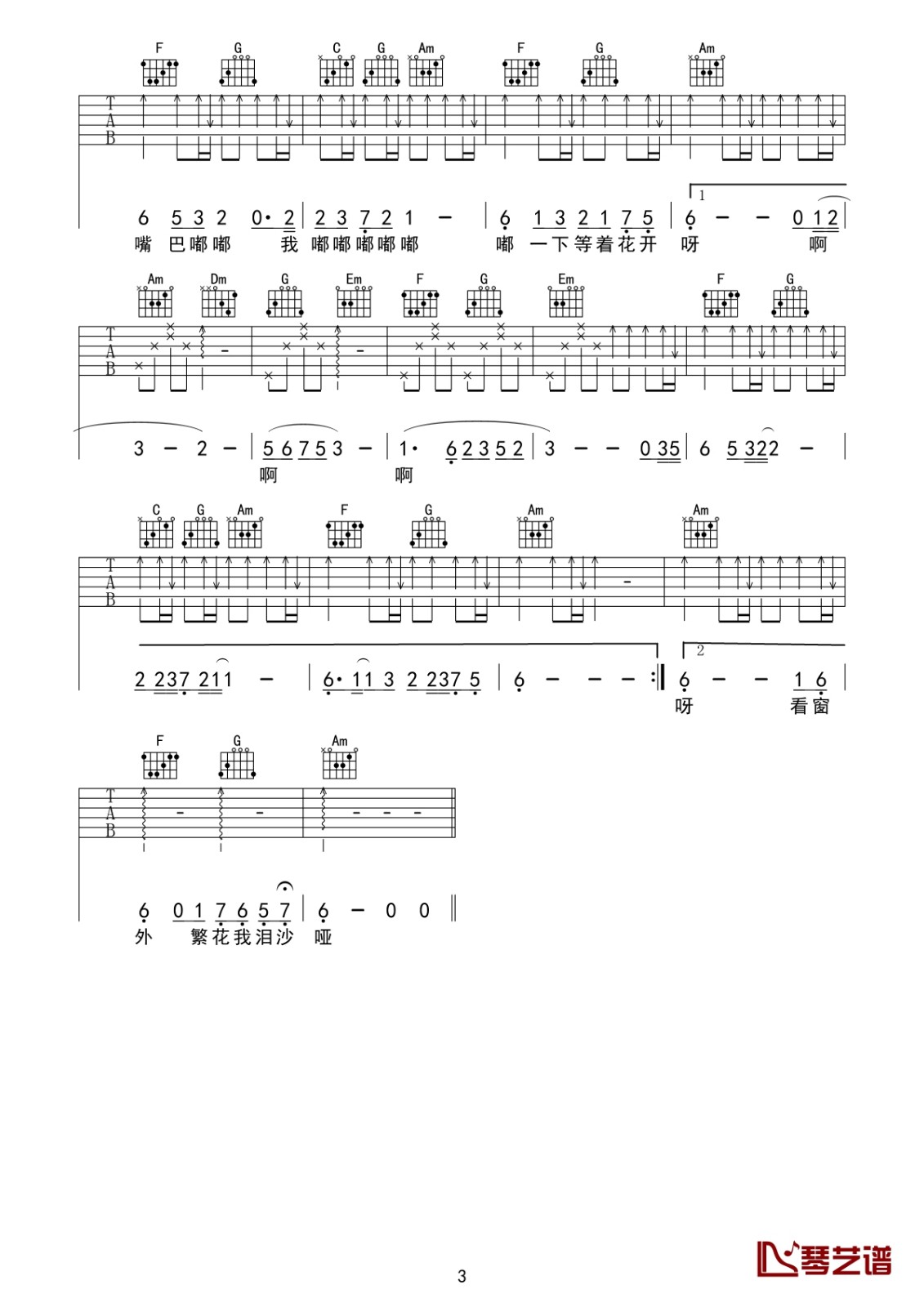 当前位置:琴谱网>吉他弹唱>嘴巴嘟嘟