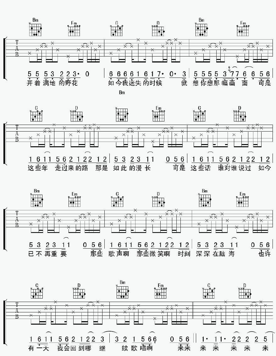 当前位置:琴谱网>吉他弹唱>童年画面