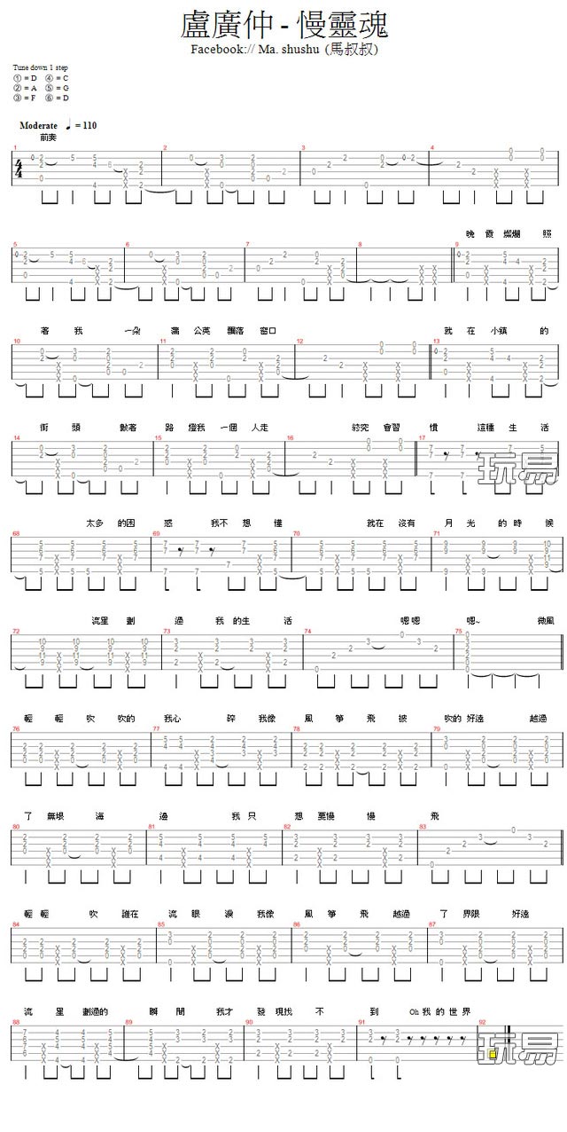 慢灵魂吉他谱 - 卢广仲 - C调吉他弹唱谱
