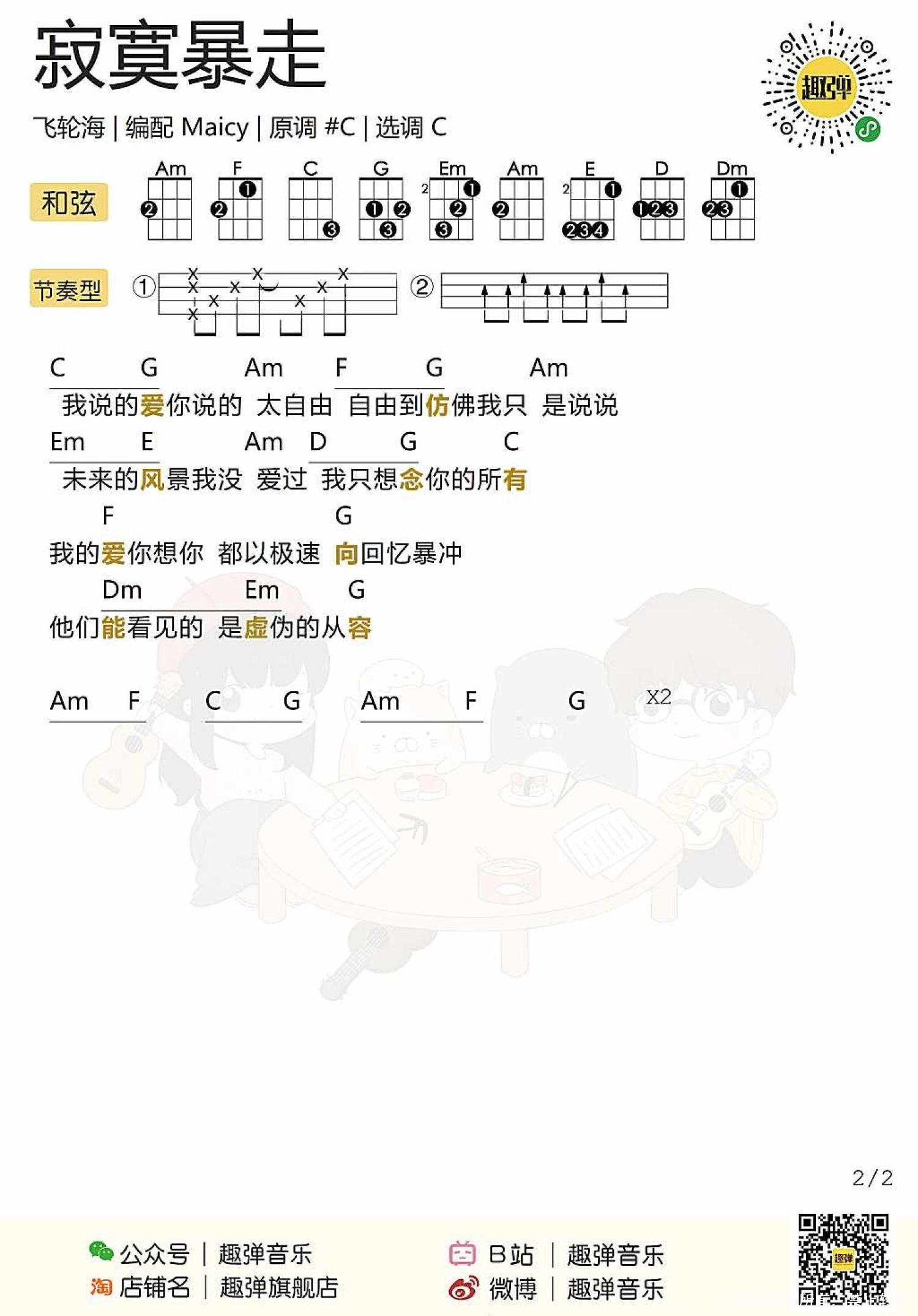 曲谱介绍: 飞轮海《寂寞暴走》,共有1张高清图谱,免翻页排版设计。