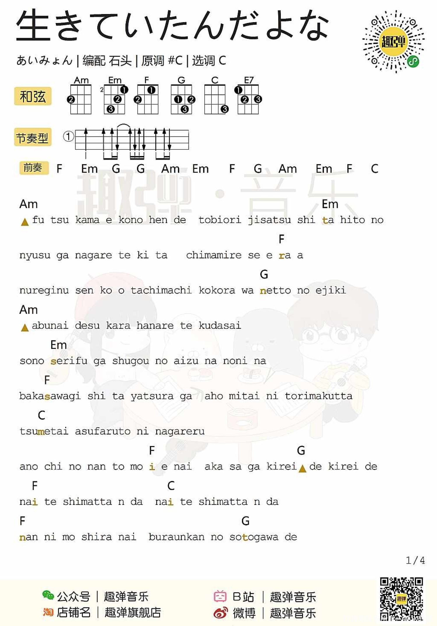 当前位置:琴谱网>尤克里里>生きていたんだよな/她曾活过啊