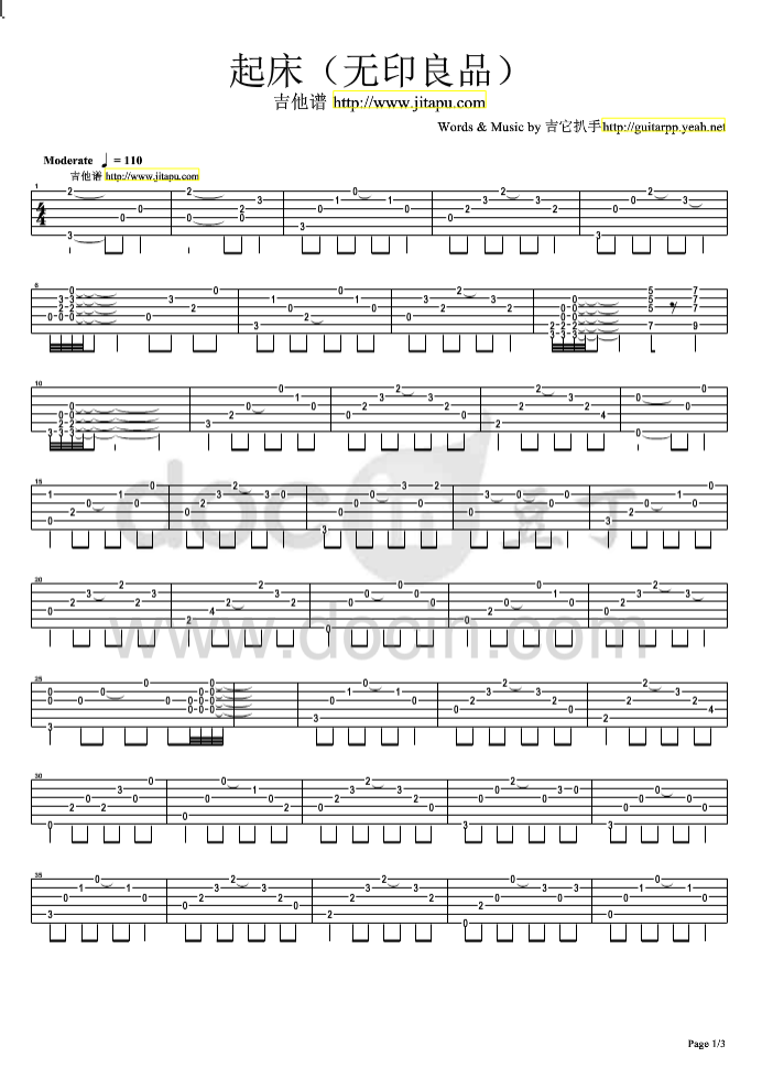 曲谱介绍: 品冠《起床》吉他独奏谱,豆丁网编配出品,共有3张高清图谱。