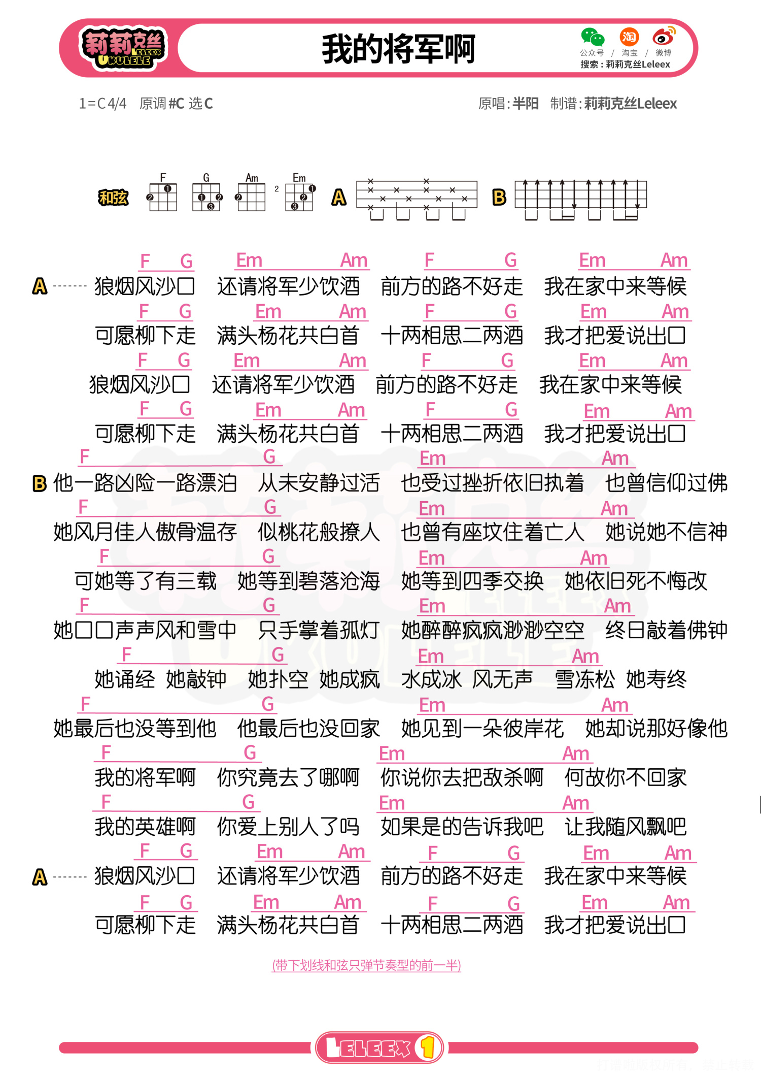 曲谱介绍: 「我的将军啊」尤克里里曲谱 更多尤克里里曲谱/教学  关注@莉莉克丝Leleex