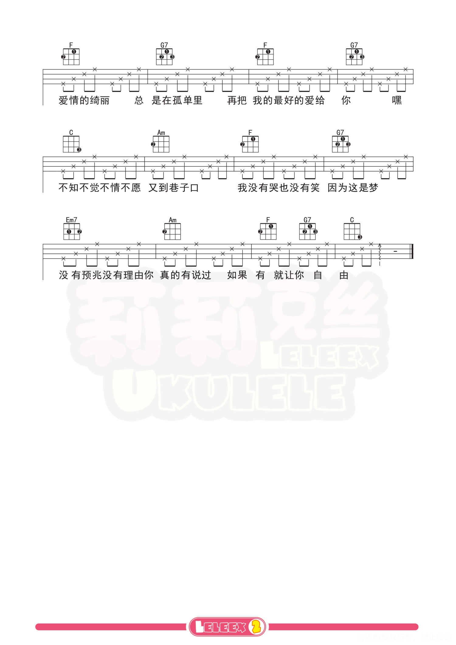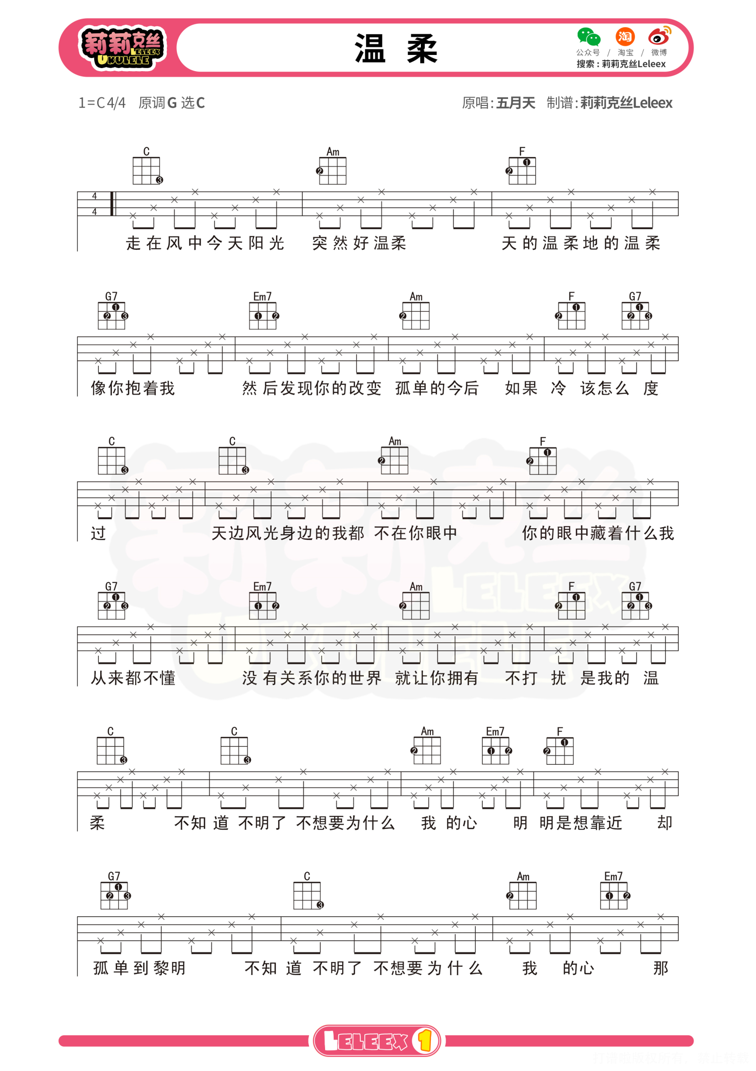 曲谱介绍: 「温柔」尤克里里曲谱(五月天) 更多尤克里里曲谱/教学  关注@莉莉克丝Leleex