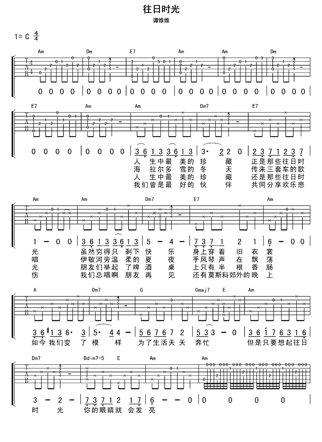 往日时光吉他谱 - 附前奏 - C调吉他弹唱谱