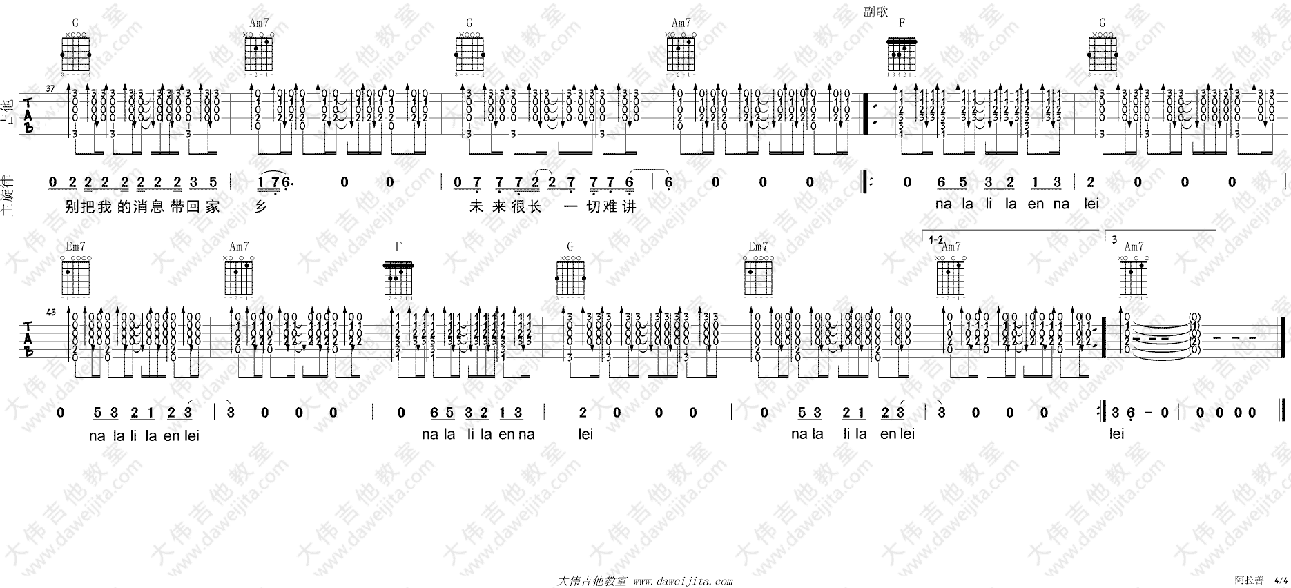 吉他弹唱C调来源:大伟吉他教室156 浏览2024-01-20 07:52发布图谱共4页