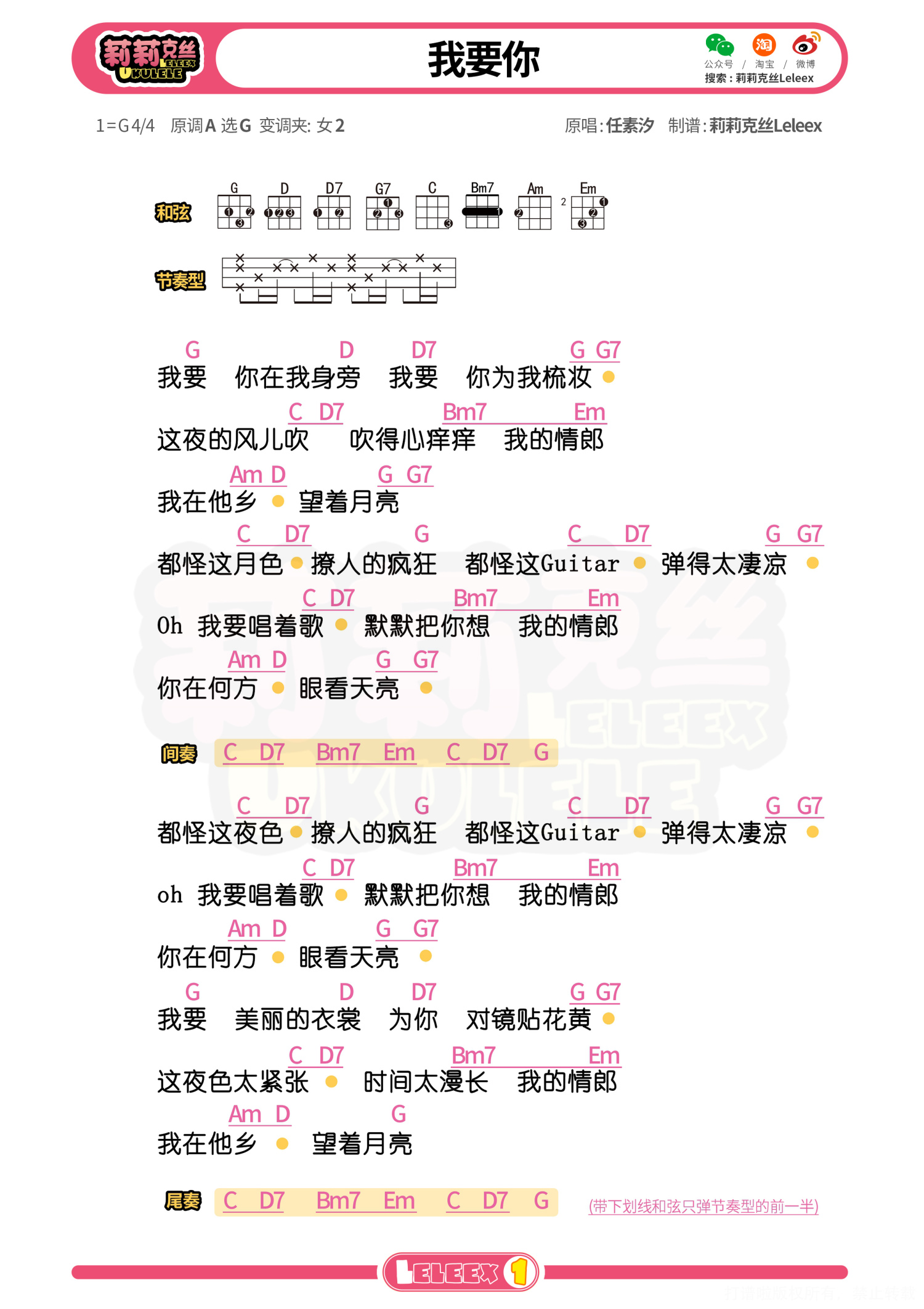 曲谱介绍: 「我要你」尤克里里谱 更多尤克里里曲谱/教学  关注@莉莉克丝Leleex