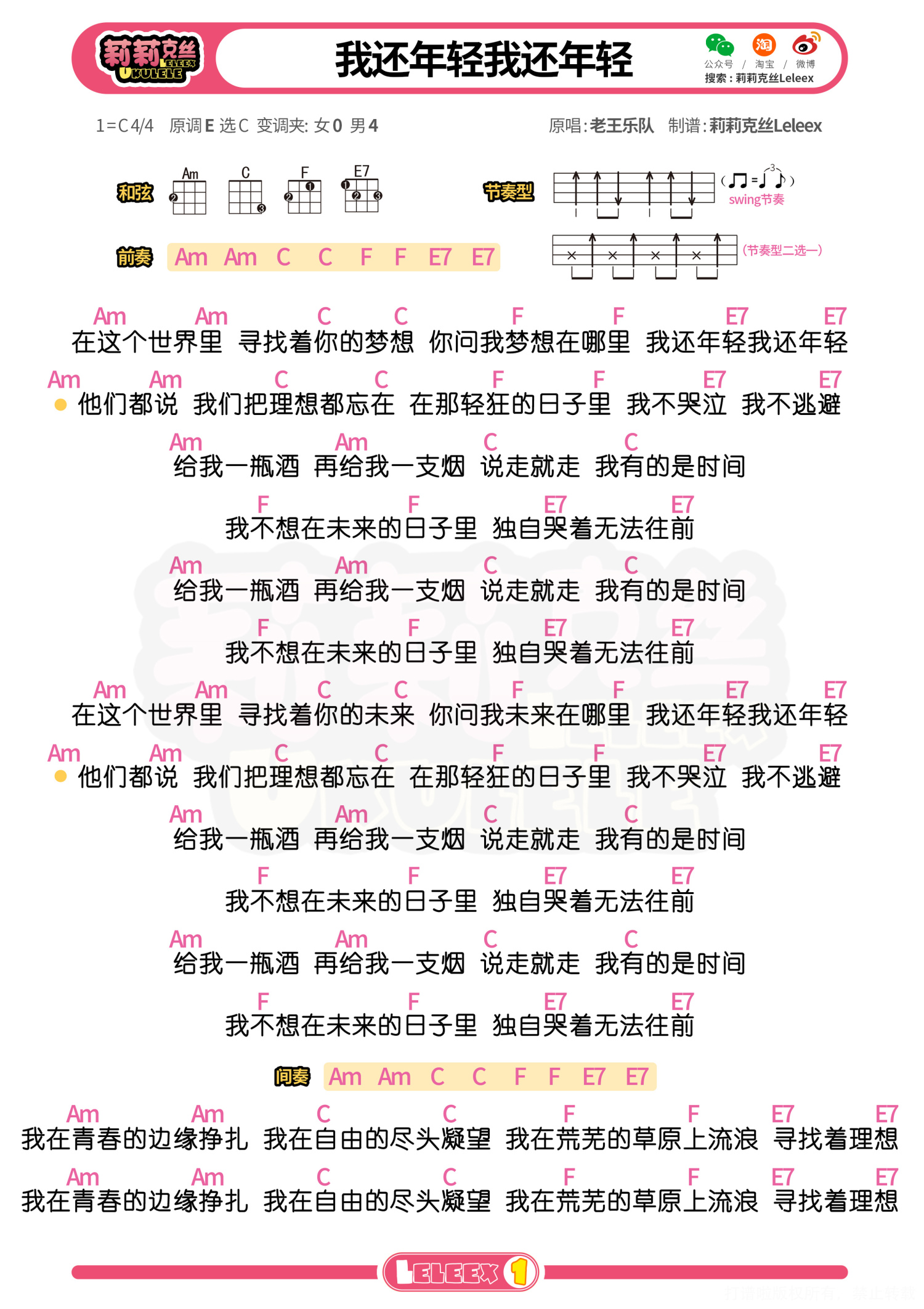 曲谱介绍: 「我还年轻」尤克里里谱 更多尤克里里曲谱/教学  关注@莉莉克丝Lelex
