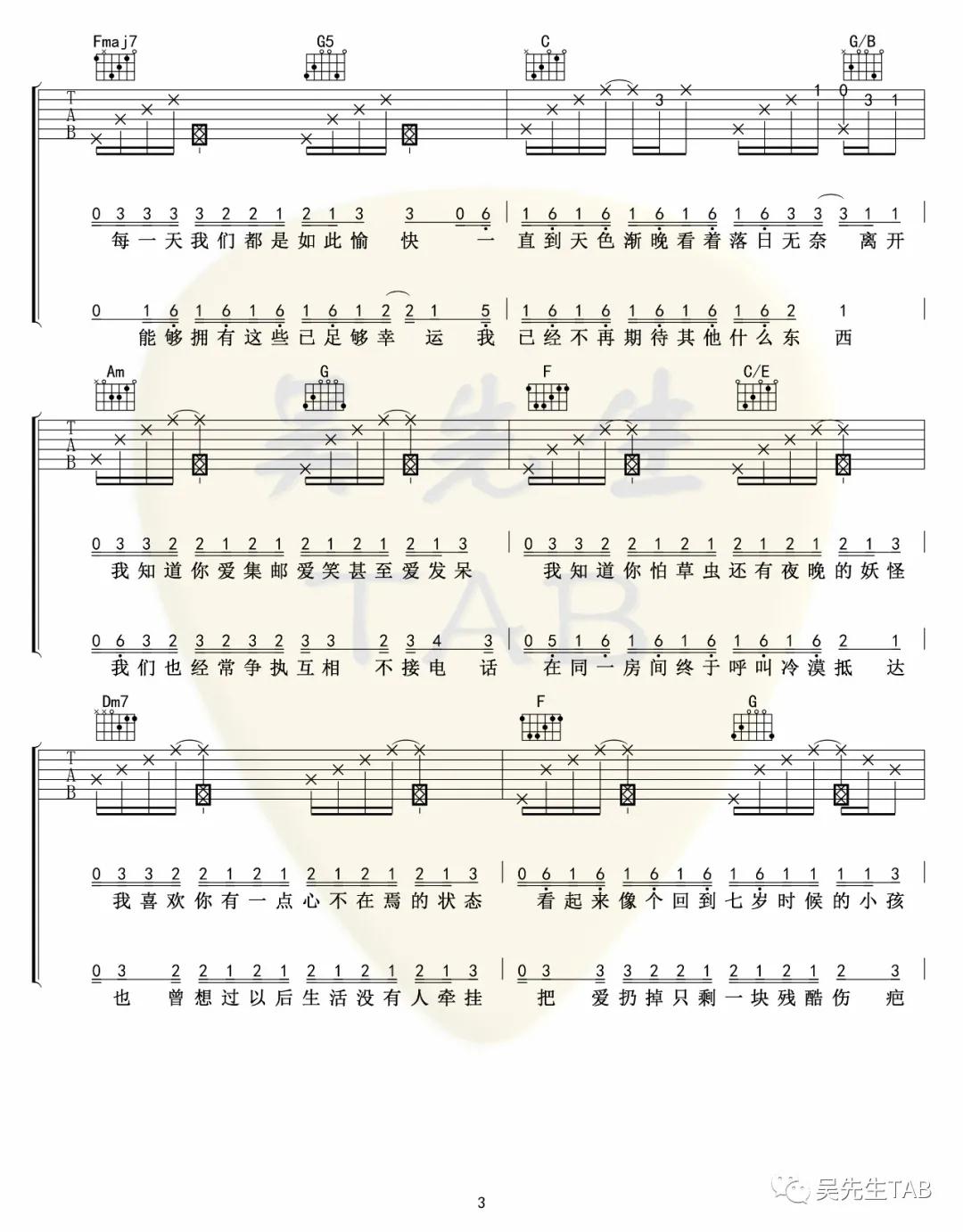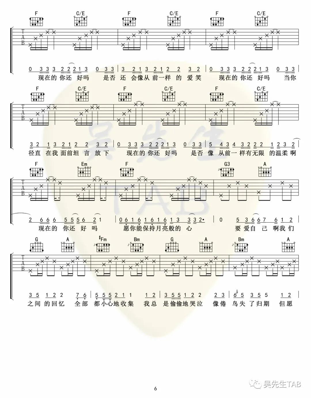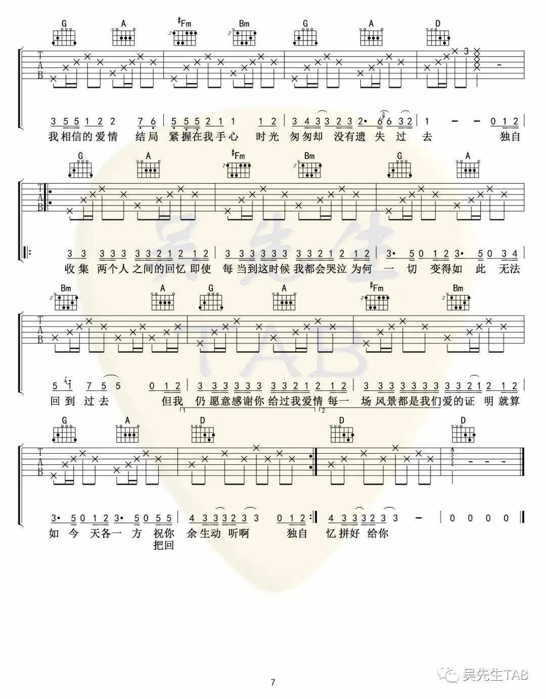 曲谱介绍: 王贰浪《把回忆拼好给你》吉他弹唱谱,采用D调指法编配,吴先生编配出品,共有7张高清图谱。