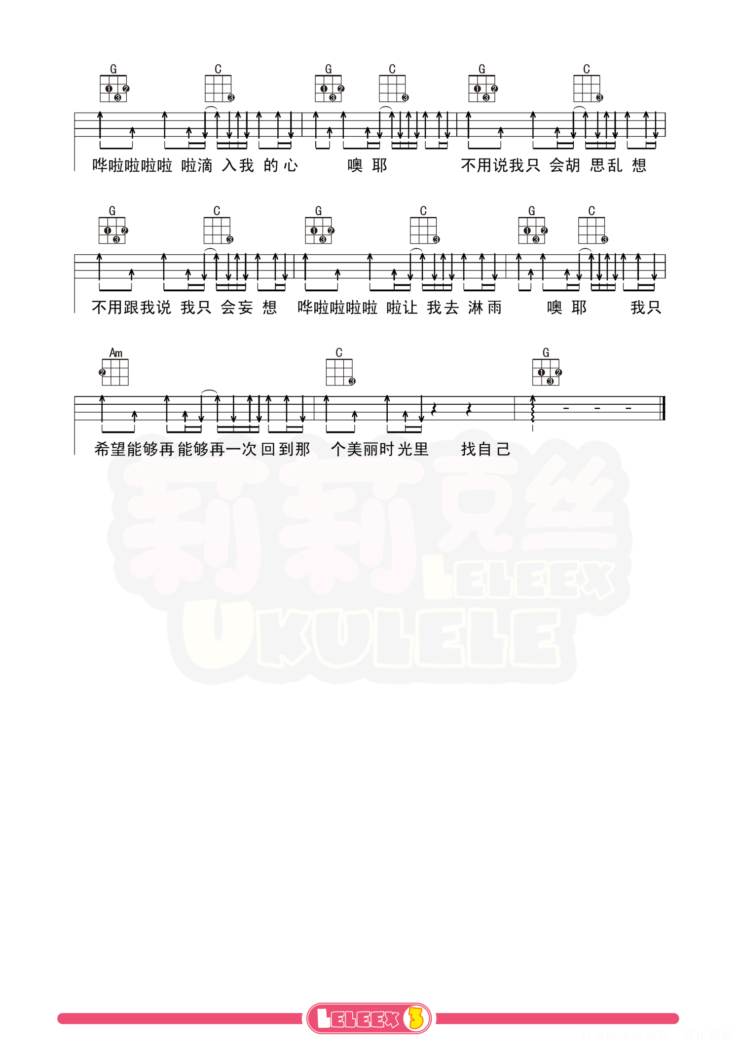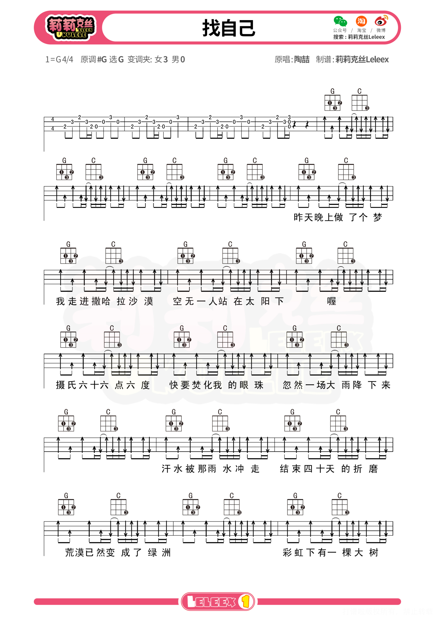 曲谱介绍: 「找自己」尤克里里曲谱(陶喆) 更多尤克里里曲谱/教学  关注@莉莉克丝Leleex