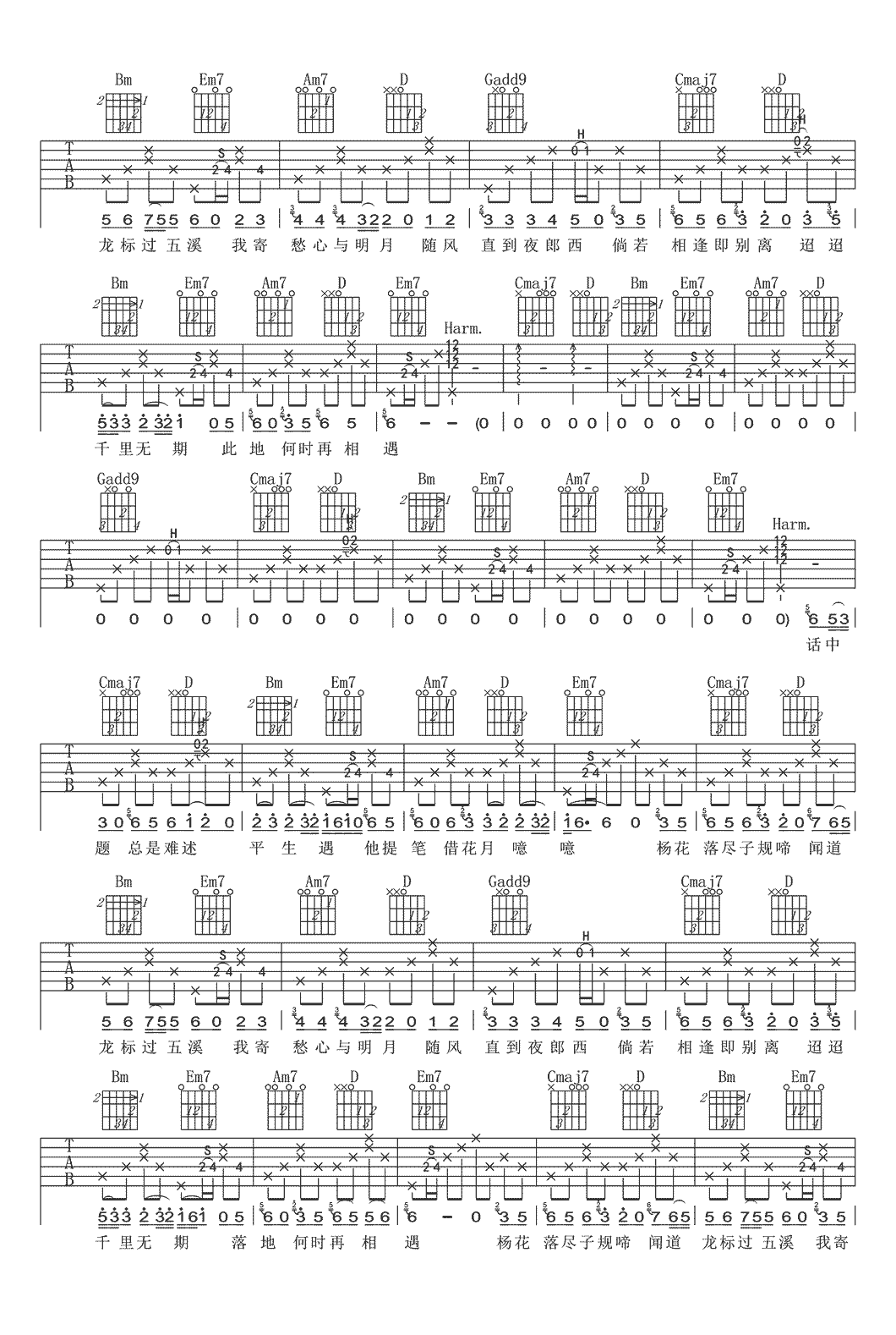 当前位置:琴谱网>吉他弹唱>杨花落尽子规啼