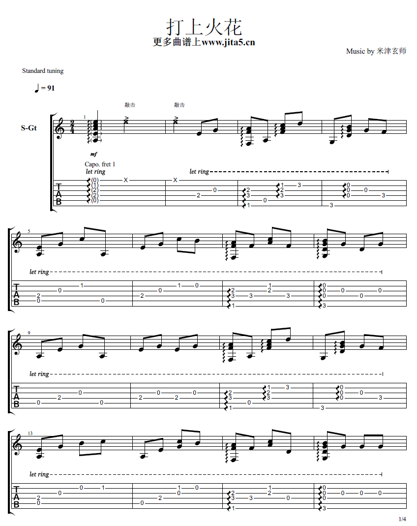 曲谱介绍: 武士桑《打上花火》吉他独奏谱,武士桑编配出品,共有4张高清图谱。
