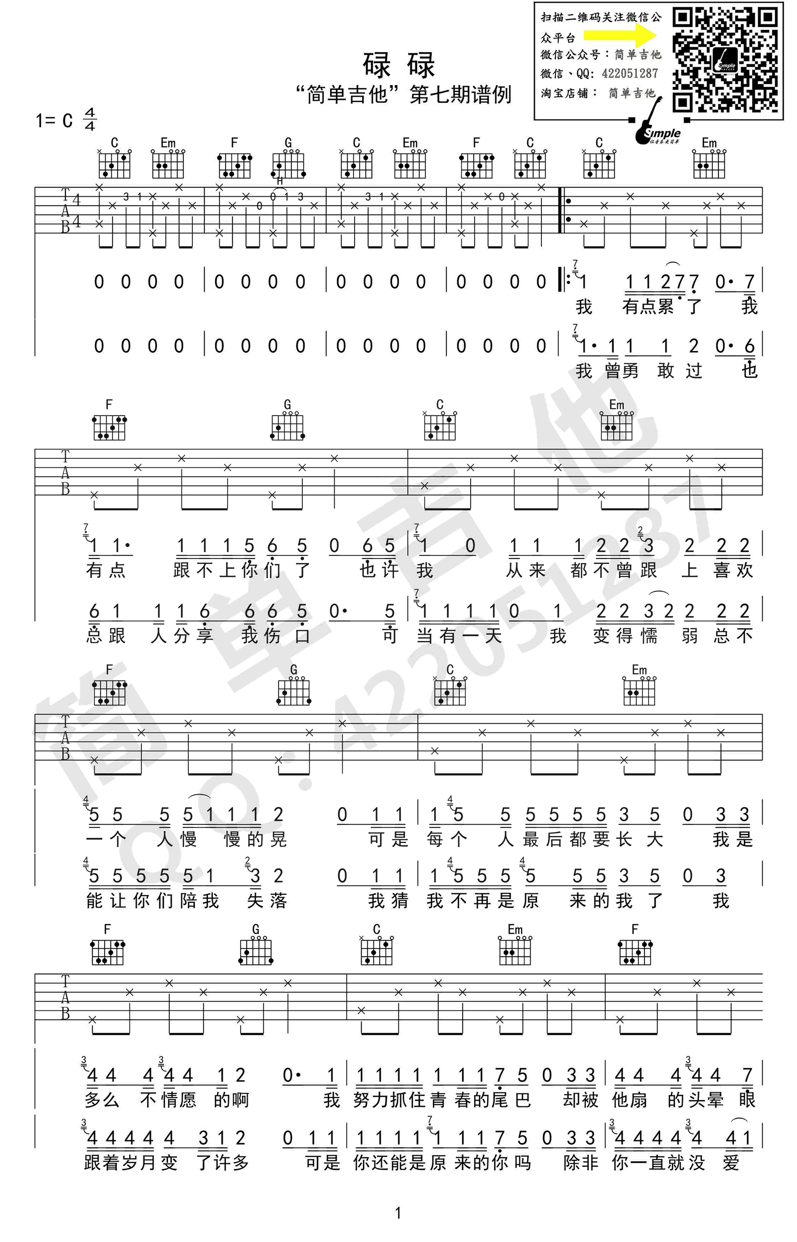 琴谱网为您精心推荐 碌碌 高清图谱