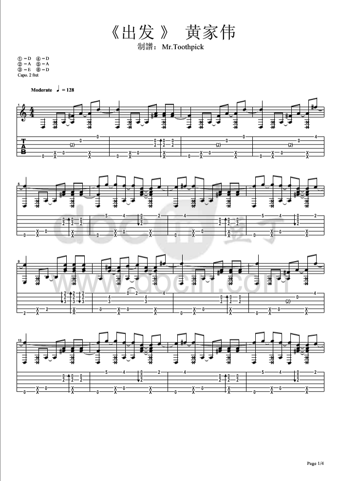 曲谱介绍: 黄家伟《出发》吉他弹唱谱,共有4张高清图谱。
