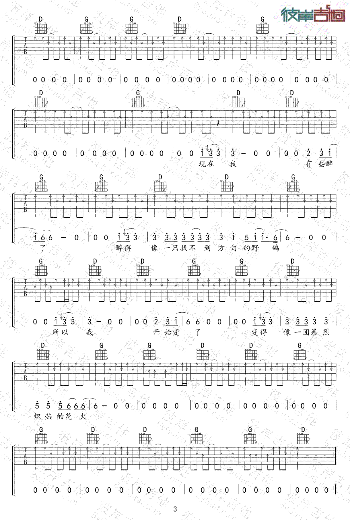 吉他弹唱D调来源:彼岸吉他121 浏览2024-01-20 08:53发布图谱共3页