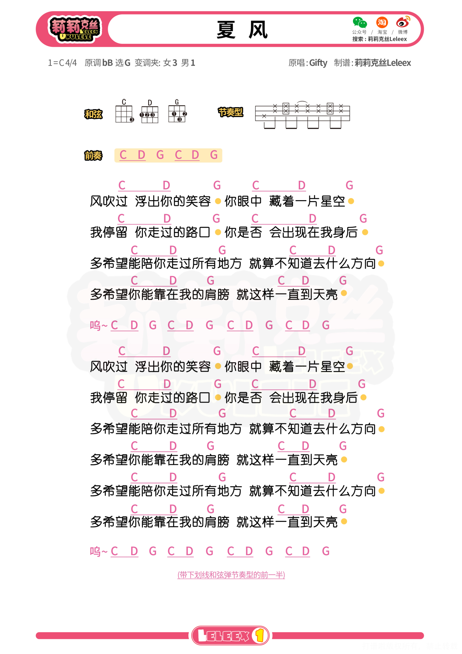曲谱介绍: 「夏风」尤克里里曲谱 更多尤克里里曲谱/教学  关注@莉莉克丝Leleex