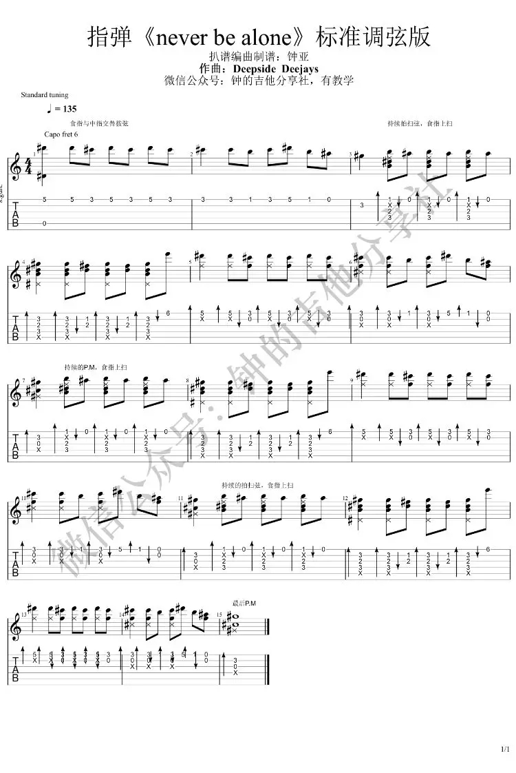 曲谱介绍: never《neverbealone》吉他独奏谱,钟的吉他分享社编配出品,共有1张高清图谱,免翻页排版设计。